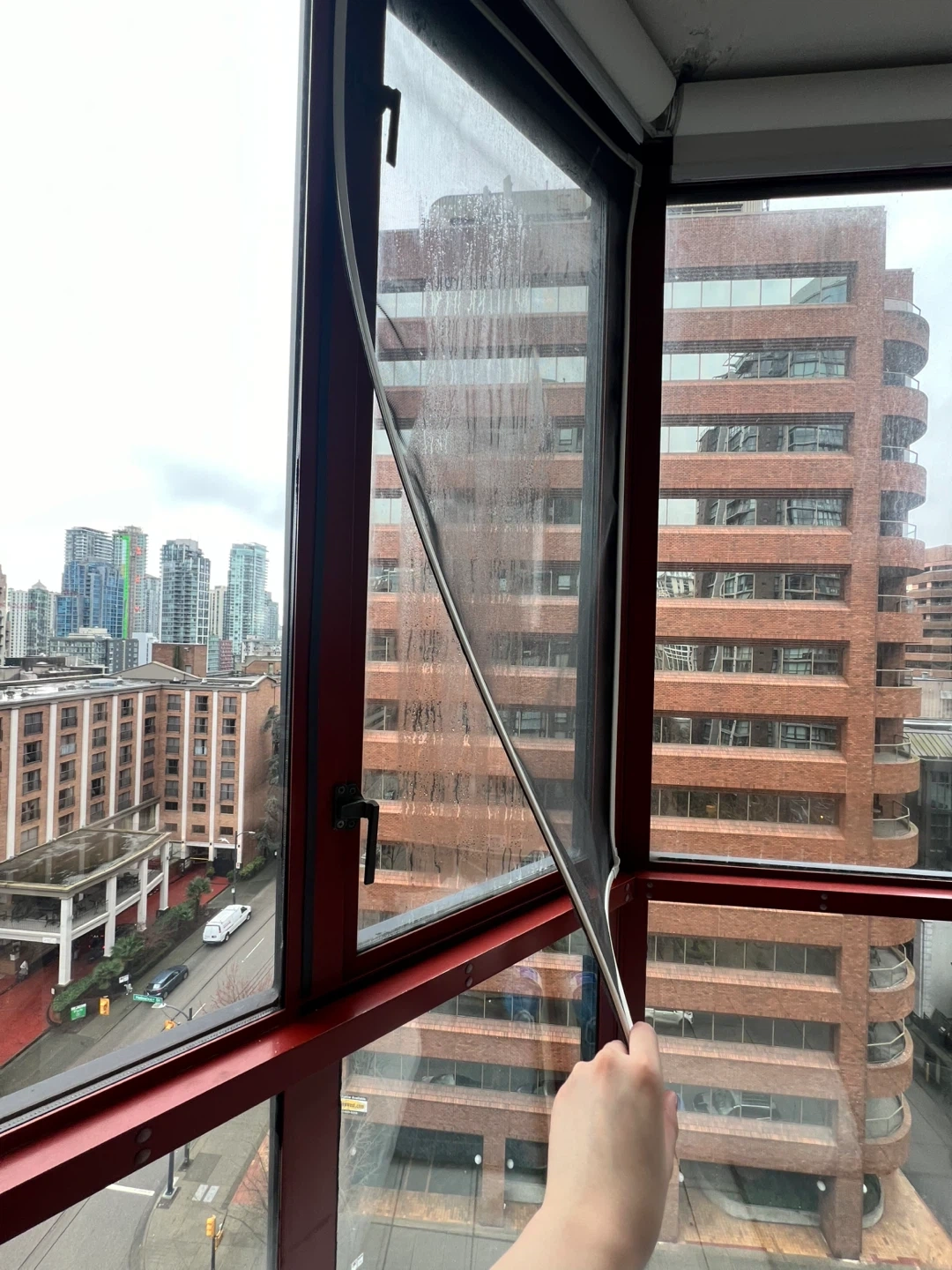A little DIY magnetic screen mesh I made so I can open the windows safely without worrying my cats will jump out.