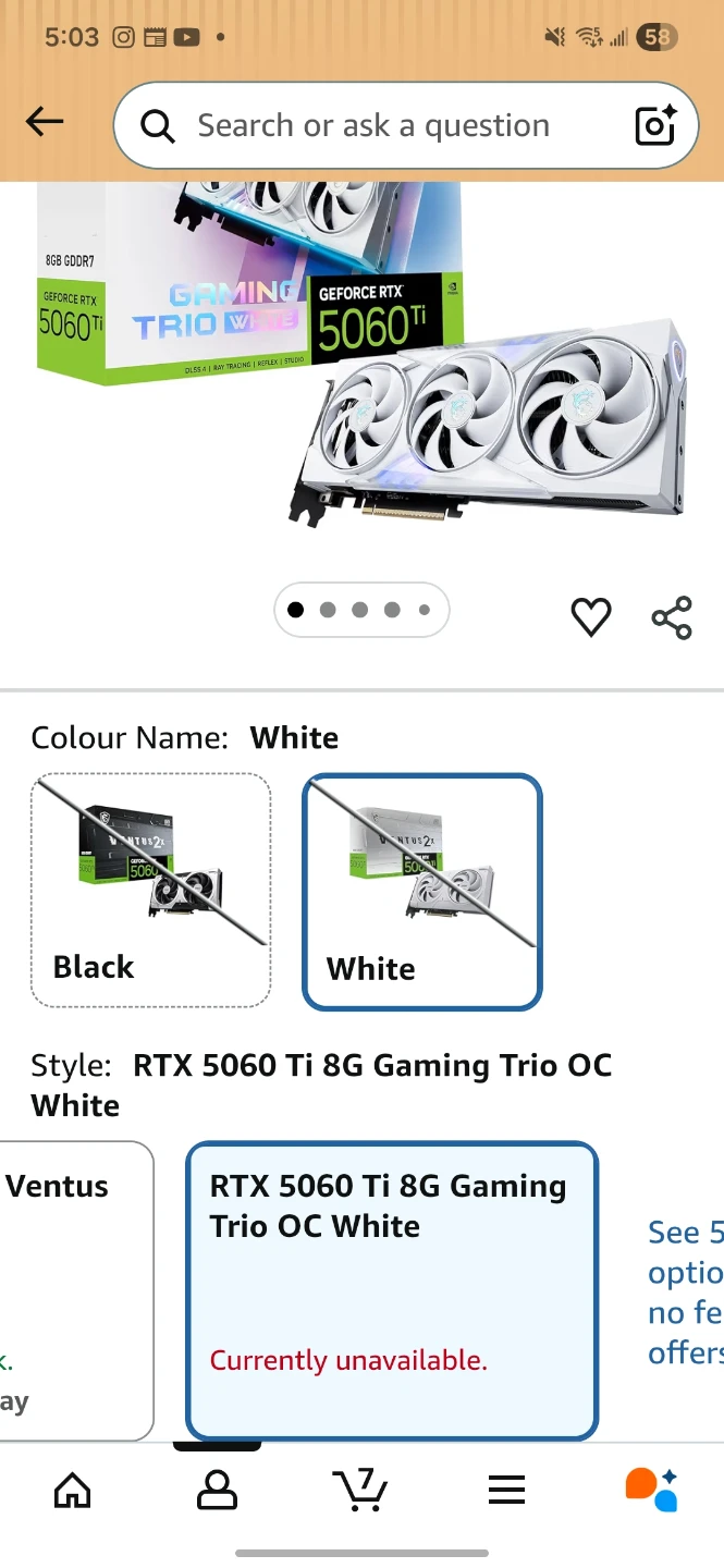 NVIDIA GeForce RTX 5060 Ti GDDR6 Graphics Card - White