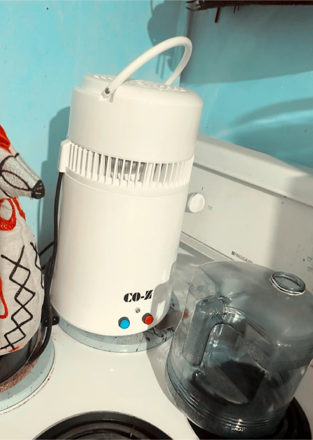 I'm selling a CO-Z water distiller and purifier for home use. It's a 4L distilled water machine that comes with a collection bottle and auto shutoff feature. It's perfect for sterile water and can be used as a still distiller for drinking water or for CPAP machines