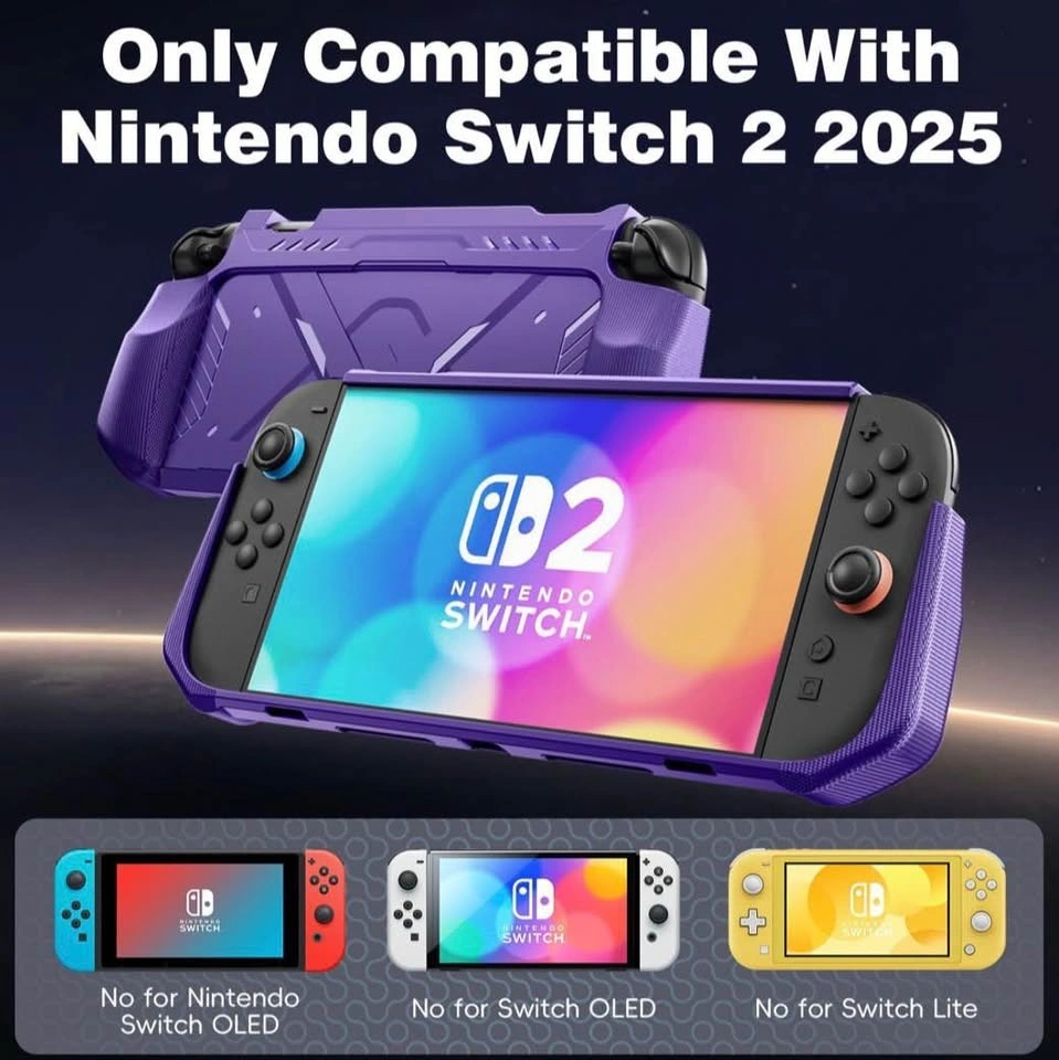 Brand new, never used purple protective case for the Nintendo Switch 2. Selling because it was a gift that arrived too late and is past the return date. The photos might make it look blue, but it's actually purple in person. This case offers full protection with a TPU back and PC front cover, designed for the 2025 Switch 2 model. It's lightweight, easy to install/remove, and has an ergonomic design for comfortable use. Features heat dissipation vents and precise cutouts. Feel free to message if you have any questions!