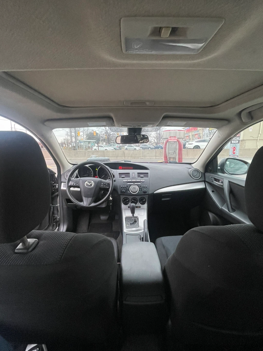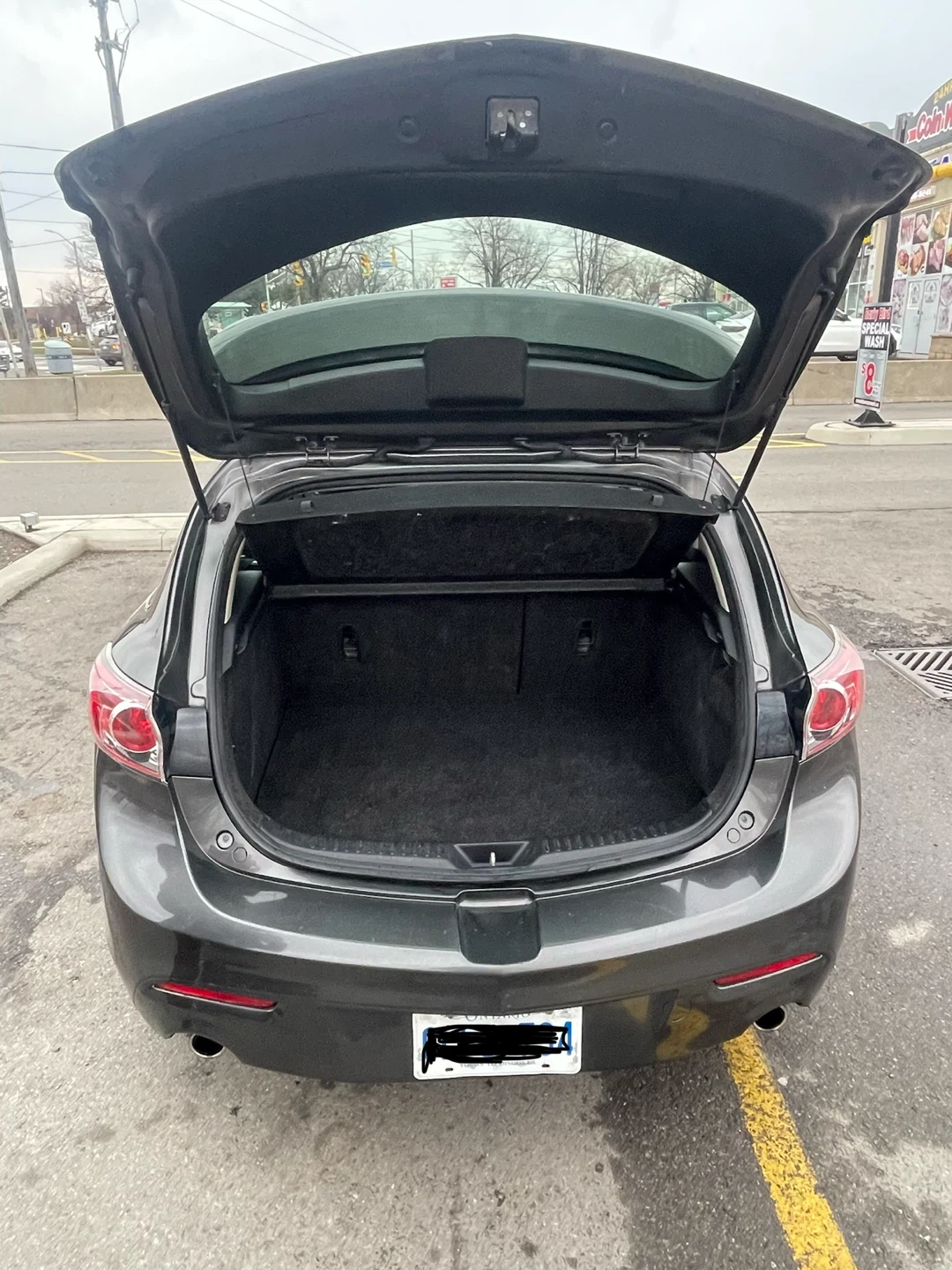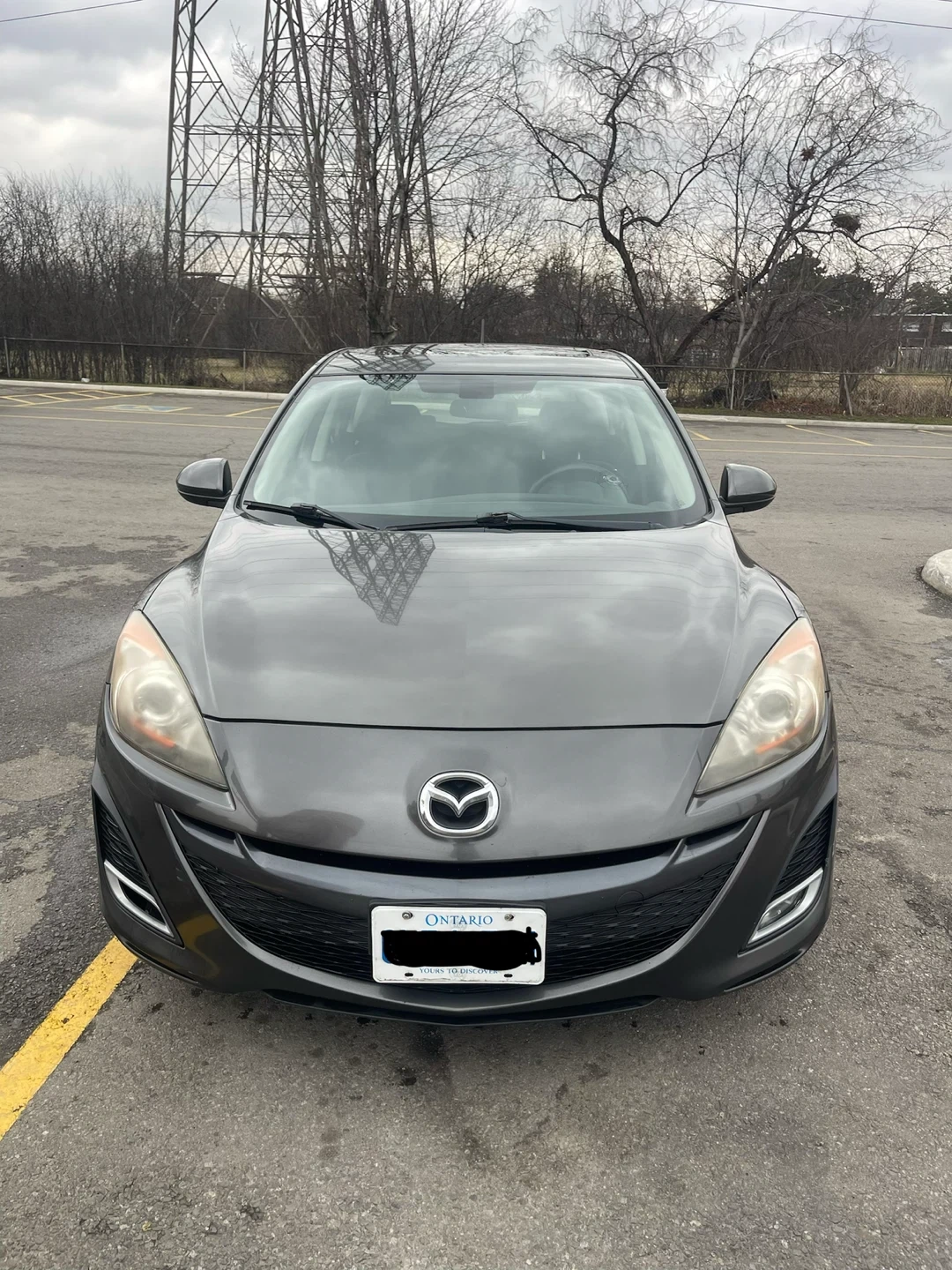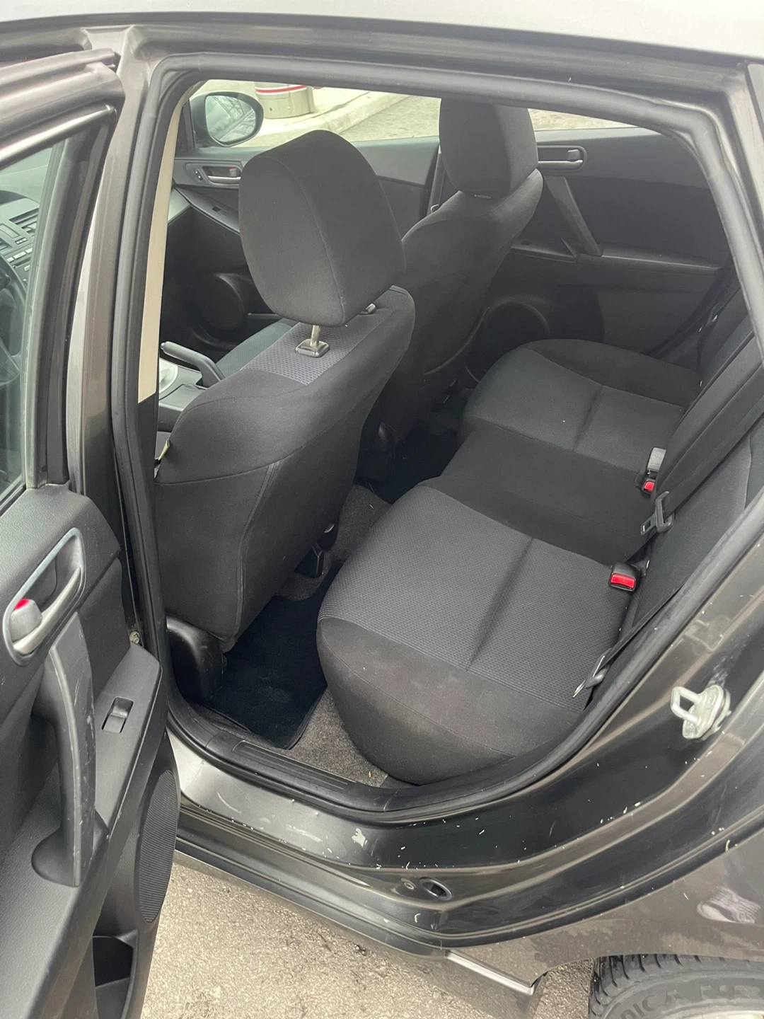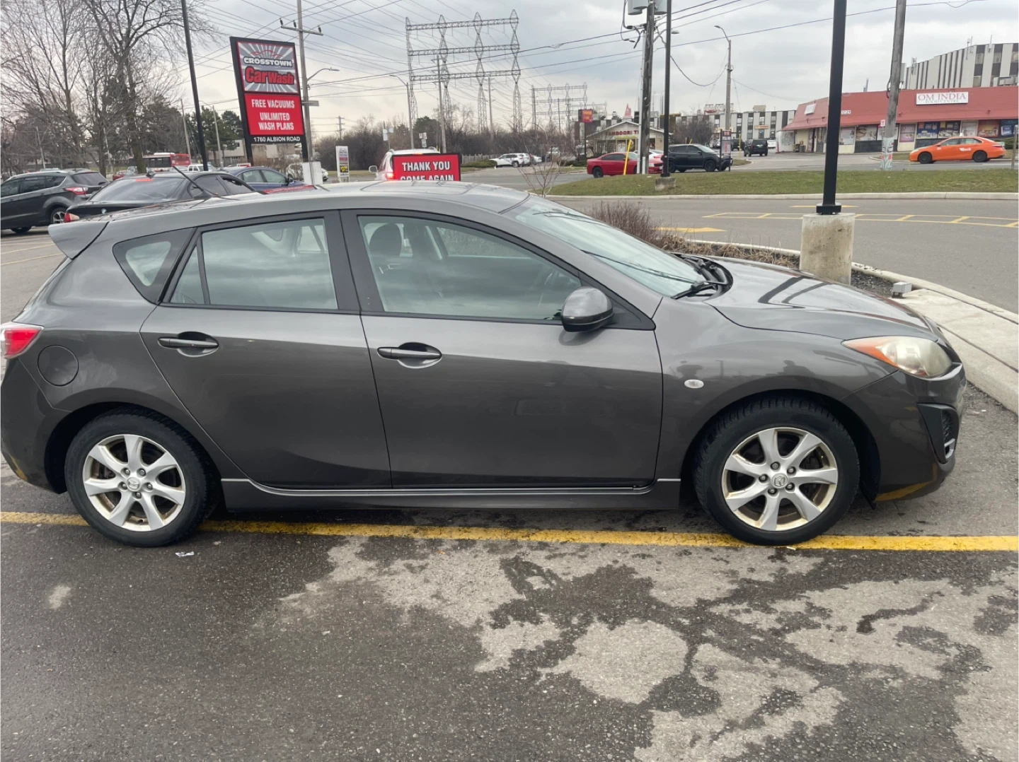 Grey 2010 Mazda 3 with a 2.5L engine. It's a five-door hatchback with a sporty design. Comfortable interior seating for passengers.