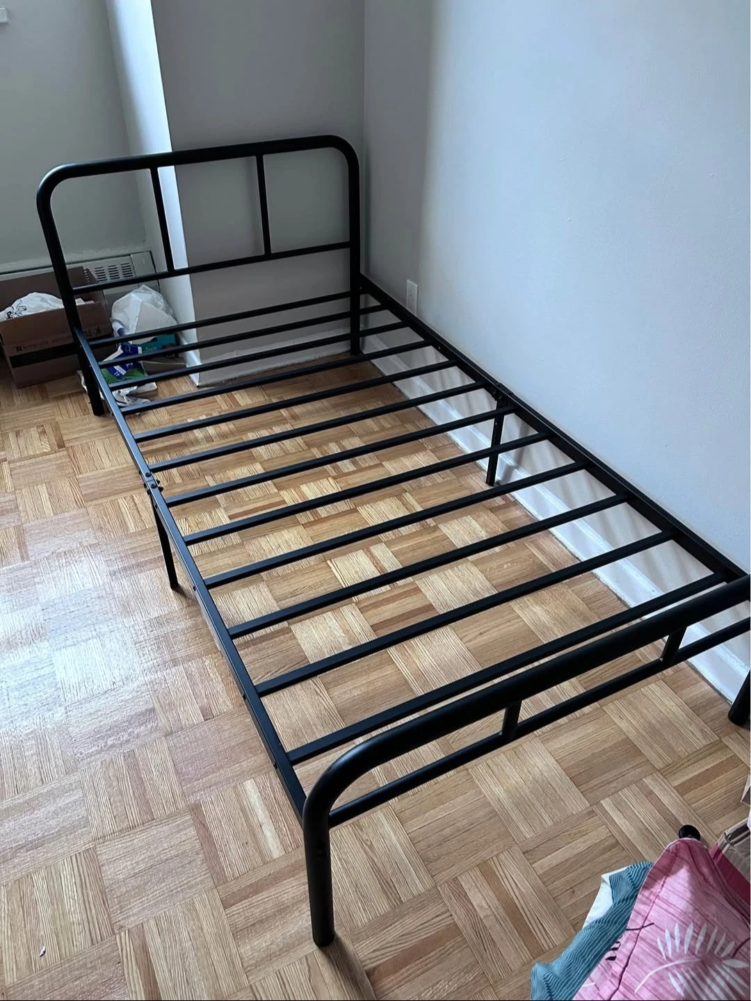 Selling a sturdy black metal bed frame in single or twin size. It's in great shape and ready for a new home. Easy to assemble and disassemble for transport. Mattress not included