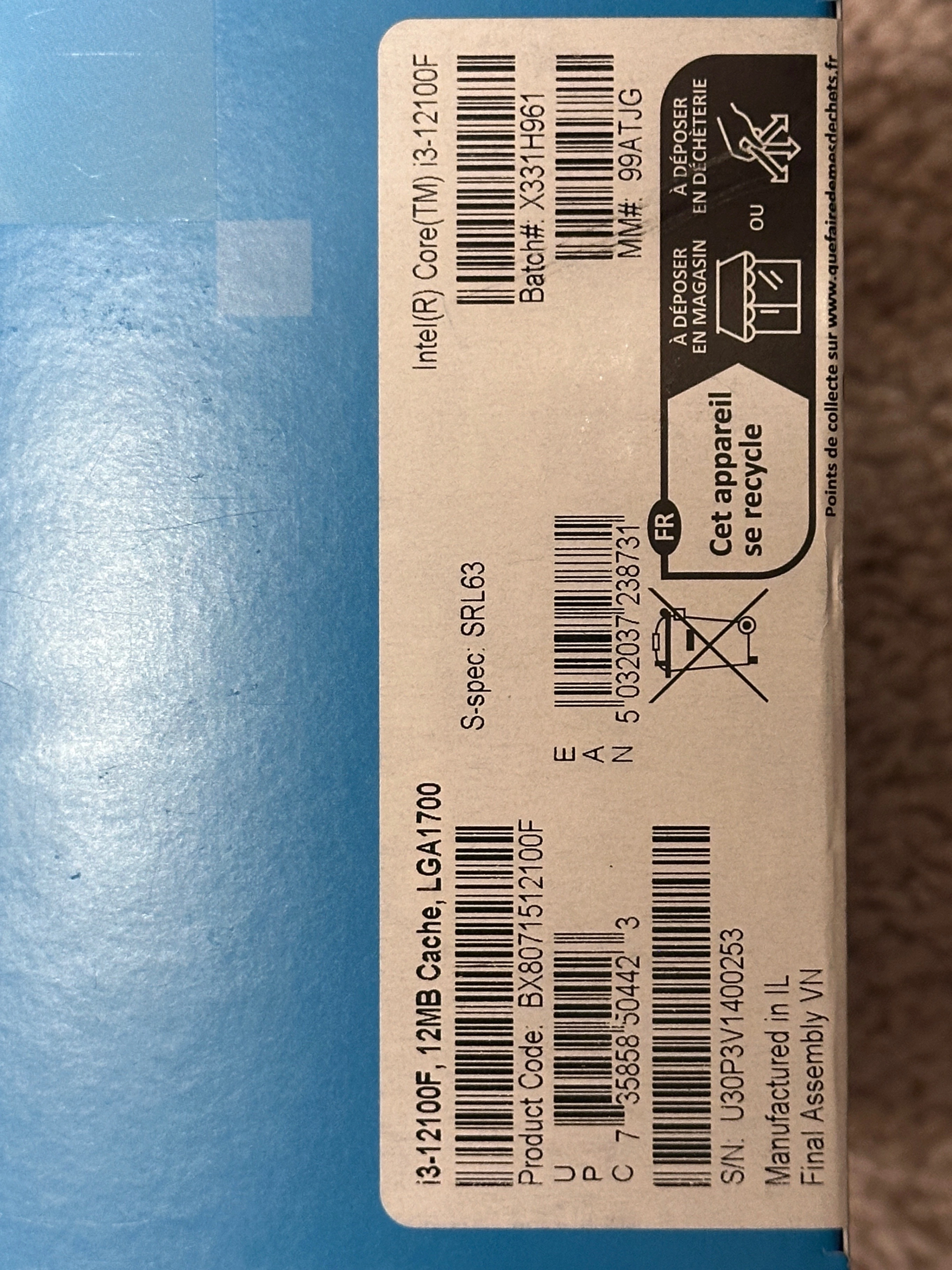 Intel Core i3-12100F 12th Gen Processor SEALED