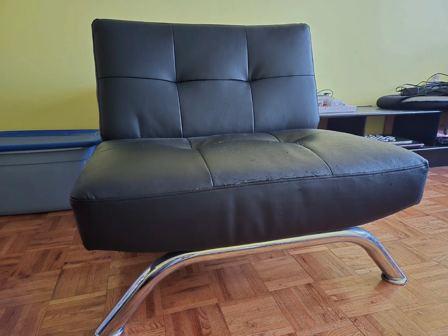 Buy & SellBlack Faux Leather Armless ChairBlack Faux Leather Armless Chair$24Some wear is visible on the seat cushion.ConditionGoodWHERE TO MEETintersectionView MapSELLERJCCentral Parkway West100 reviews0 chats·1 favorites·33 viewsSEND CHAT TO SELLERHi JC! I’m interested in your listing.Hi JC! I’m interested in your listing.Get the Karrot app to chatSign In to chat