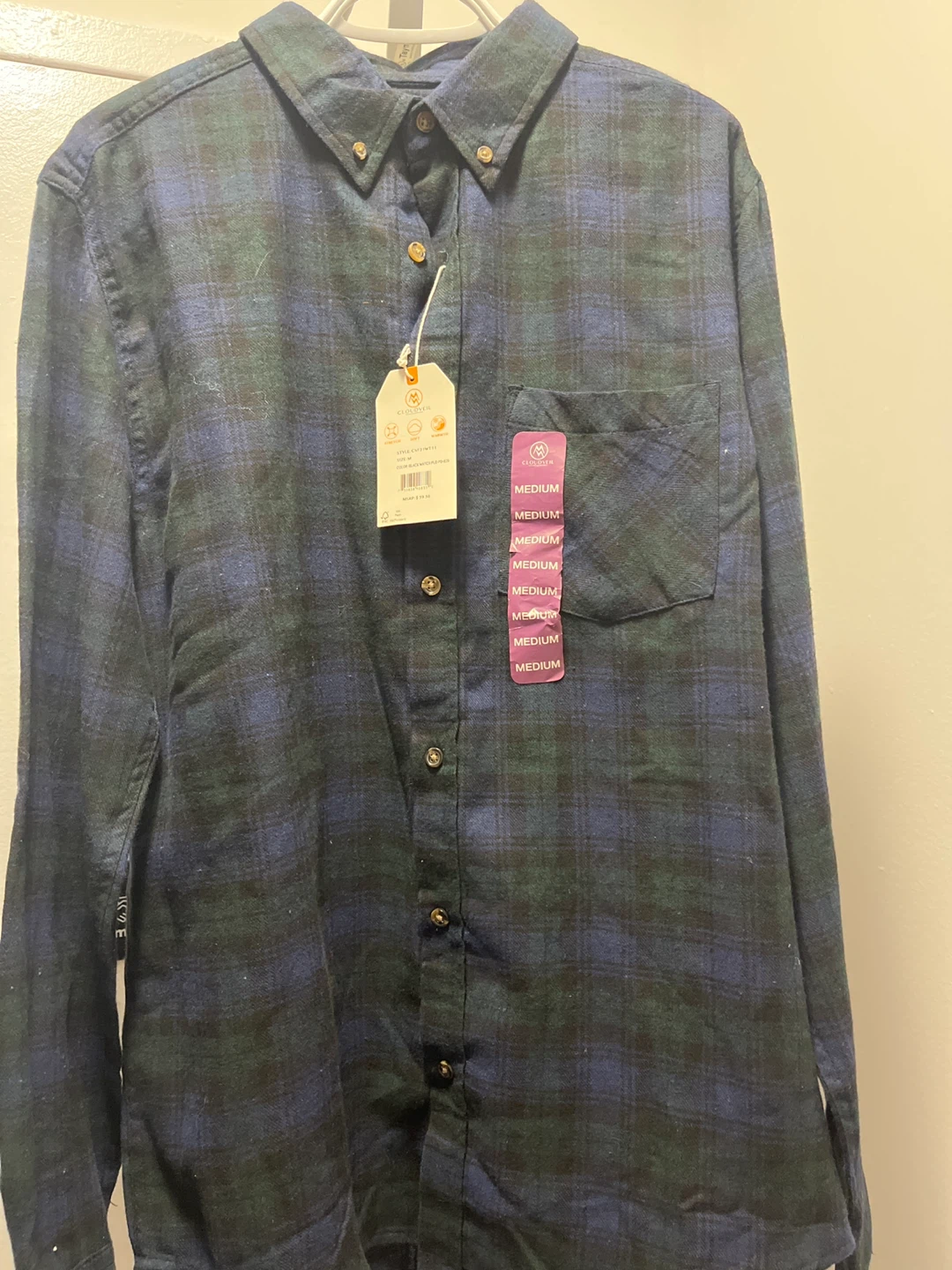 Cozy Cloudveil flannel shirt in size medium! This shirt is black watch plaid and is perfect for layering or wearing on its own. It's soft, stretchy, and warm. Originally bought for $59.50