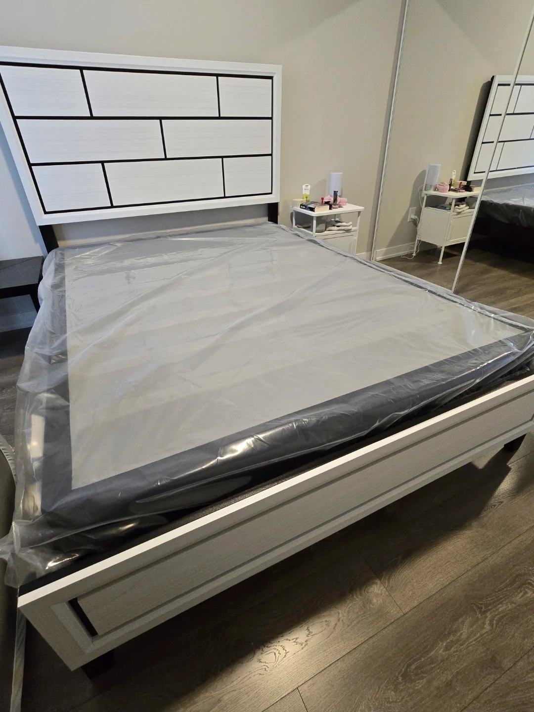 It is still in its protective plastic wrapping ✅️ We are selling it simply because our bed is too high with it. It's brand new.