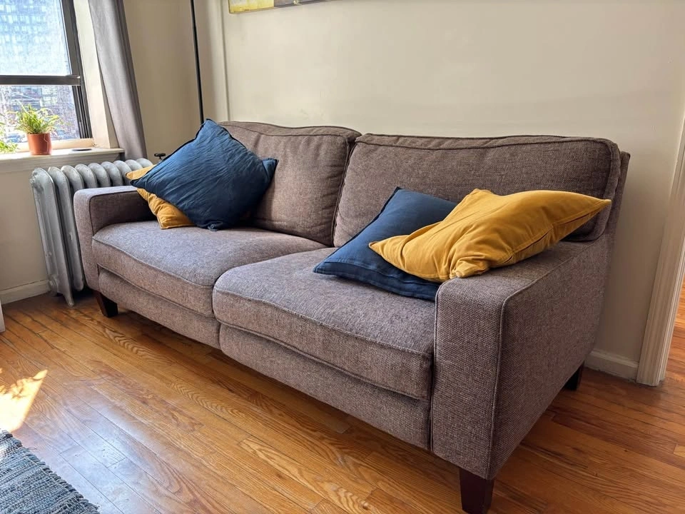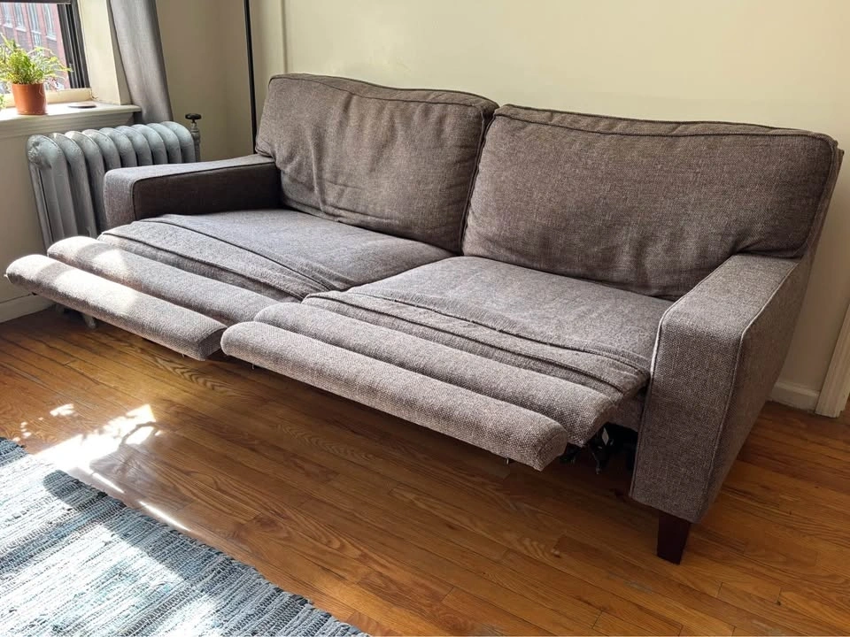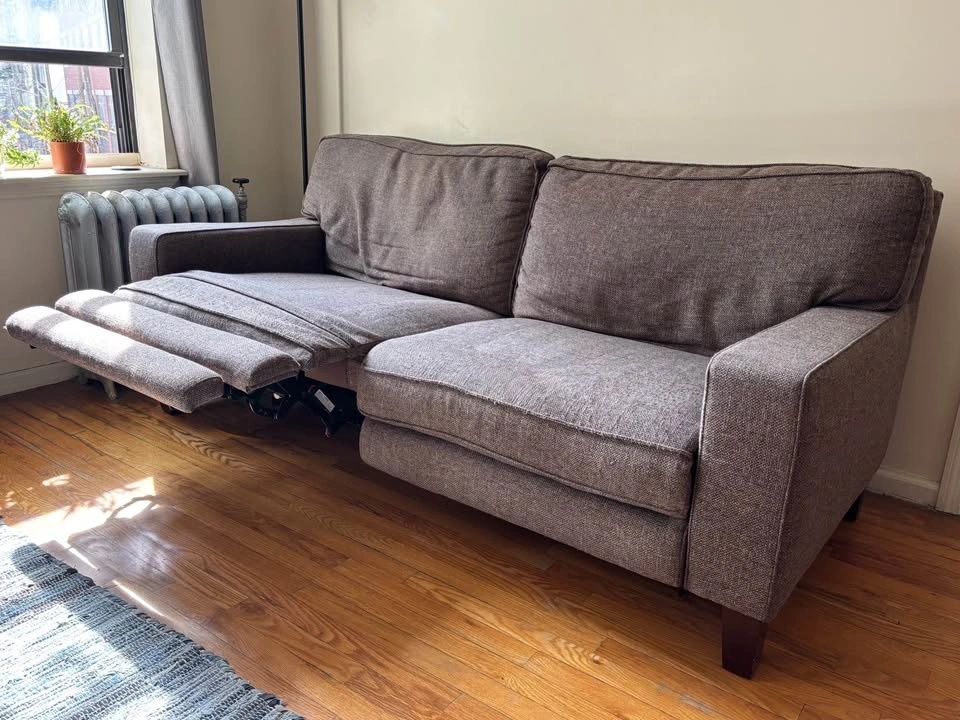 Comfortable contemporary style apartment sofa. Features electric leg rests. Normal wear from light use. Throw pillows included if you want them!