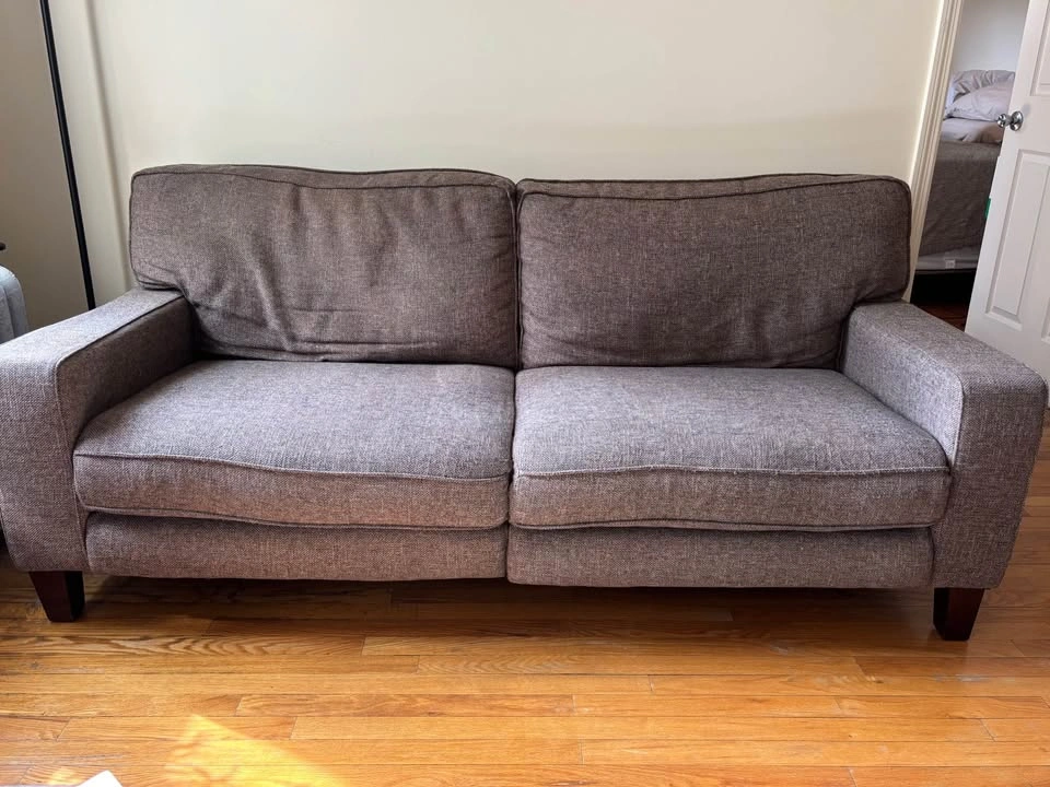 Comfortable contemporary style apartment sofa. Features electric leg rests. Normal wear from light use. Throw pillows included if you want them!