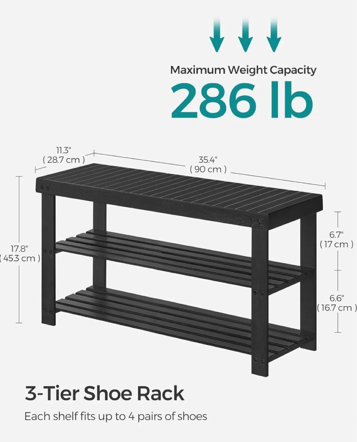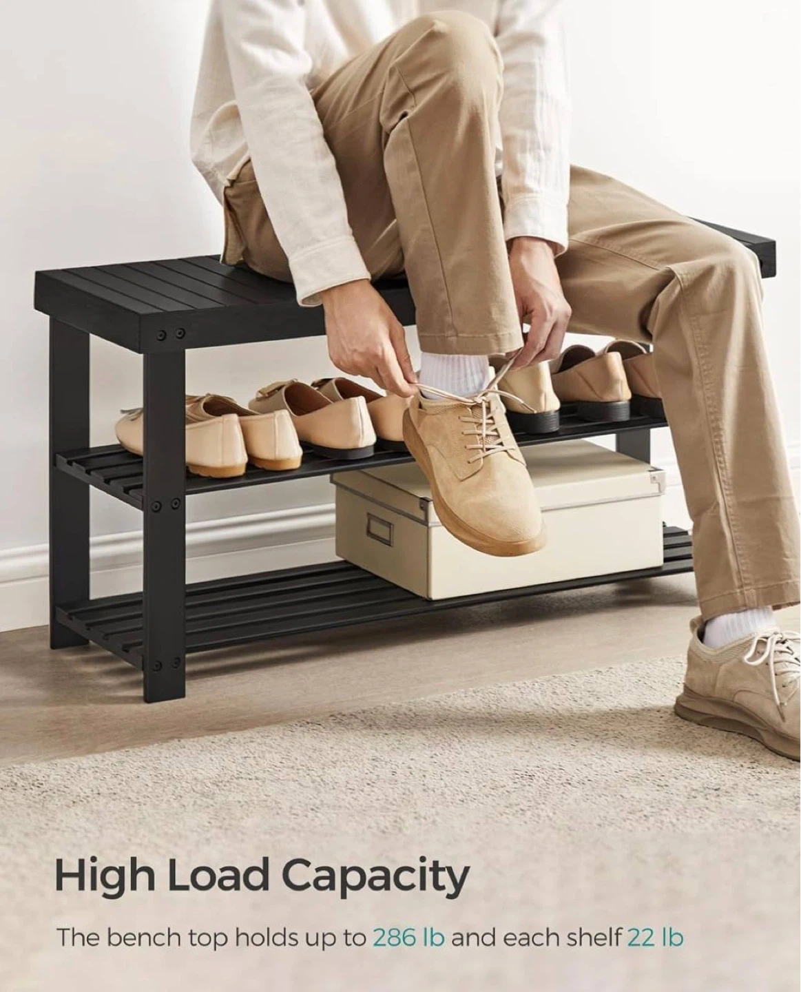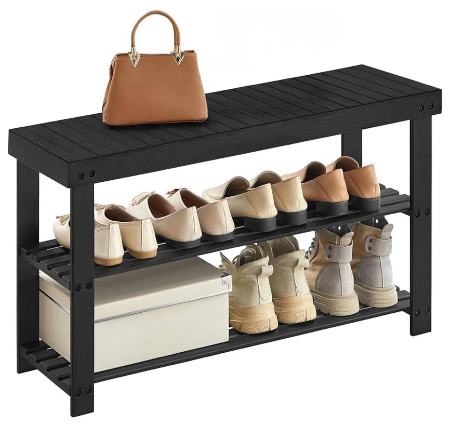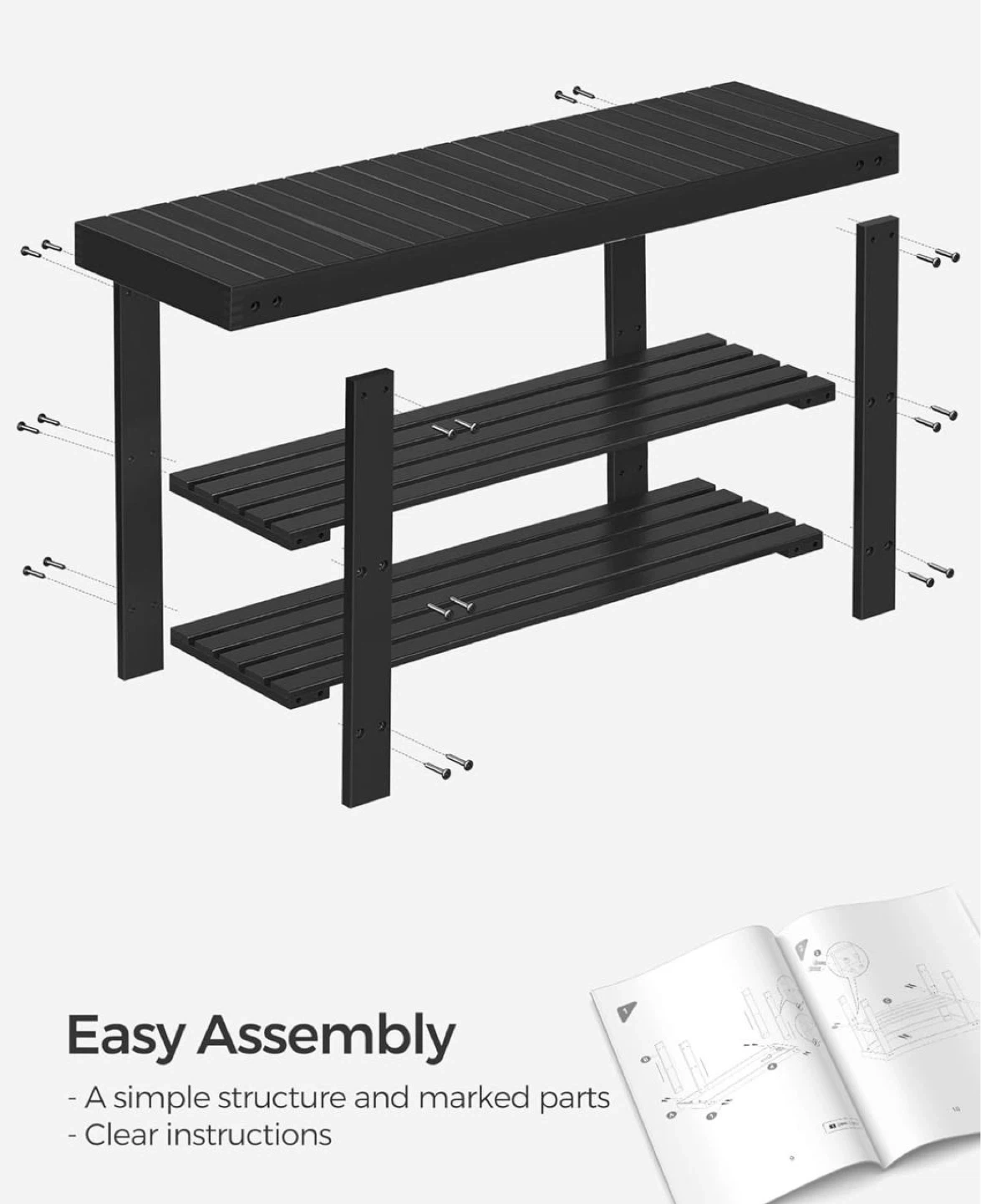 SONGMICS 3-Tier Shoe Rack Bench - Black