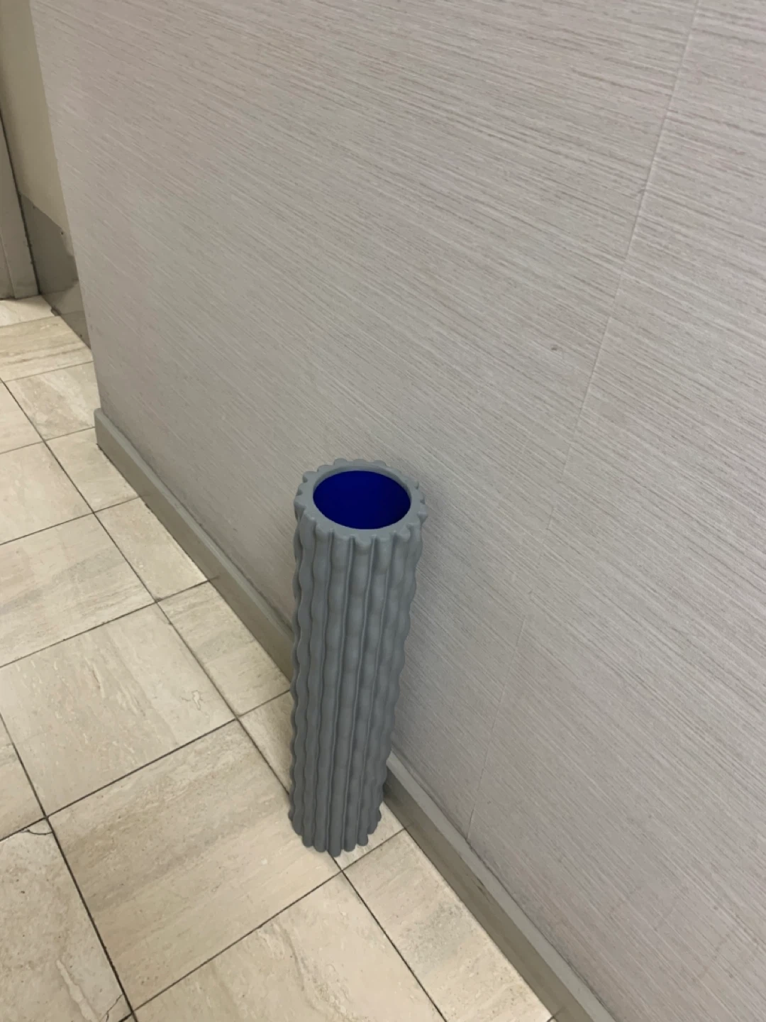 Grey textured foam roller with a blue inner core. It's designed for muscle recovery and massage. Great for post-workout stretching!