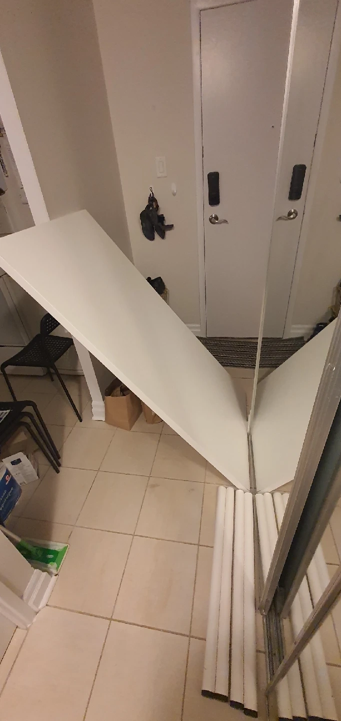 (Will be very happy if you can trade for a plant or some cute stickers/figurines!) Free white Ikea large sized Linmonn desk top with adils legs, its all white. I got it second hand and have used it for arts and crafts so its a bit scratched and the old seller said it had a bit of a sag in it from their heavy large desktop arm. I never noticed any sagging personally and the table is still functional and strong. The legs screw on but make sure theyre tight, the table can wobble a little if they arent. Even when they are on cam wobbles a tiny bit if you have a looot of heavy stuff on it which i did. Pick up only (unfortunately) at 1101 Bay. I can bring it down to the lobby/entrance though