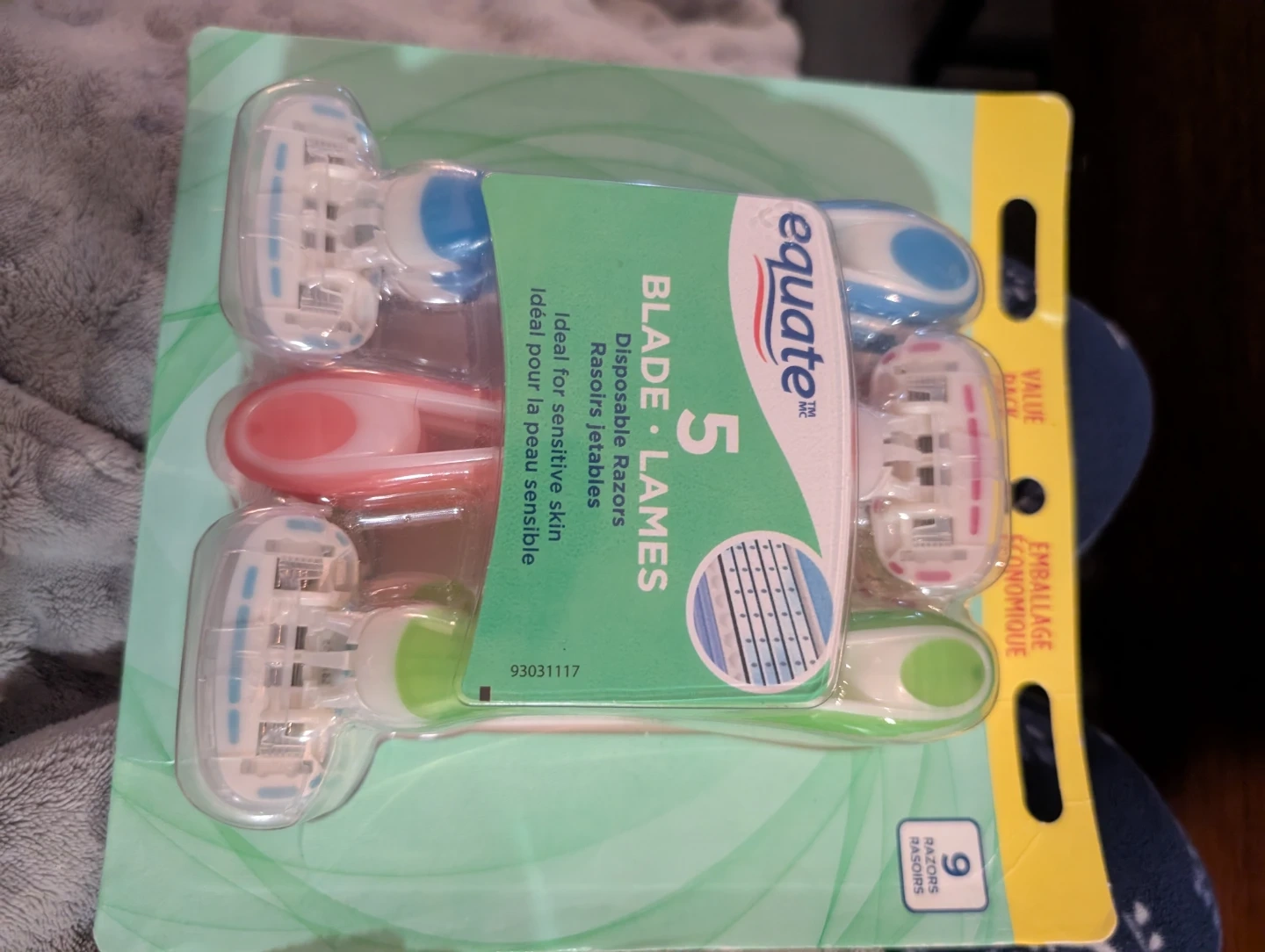This pack includes 5 disposable razors from Equate, ideal for sensitive skin. They're designed for a smooth shave. These razors are great for everyday use or travel.
