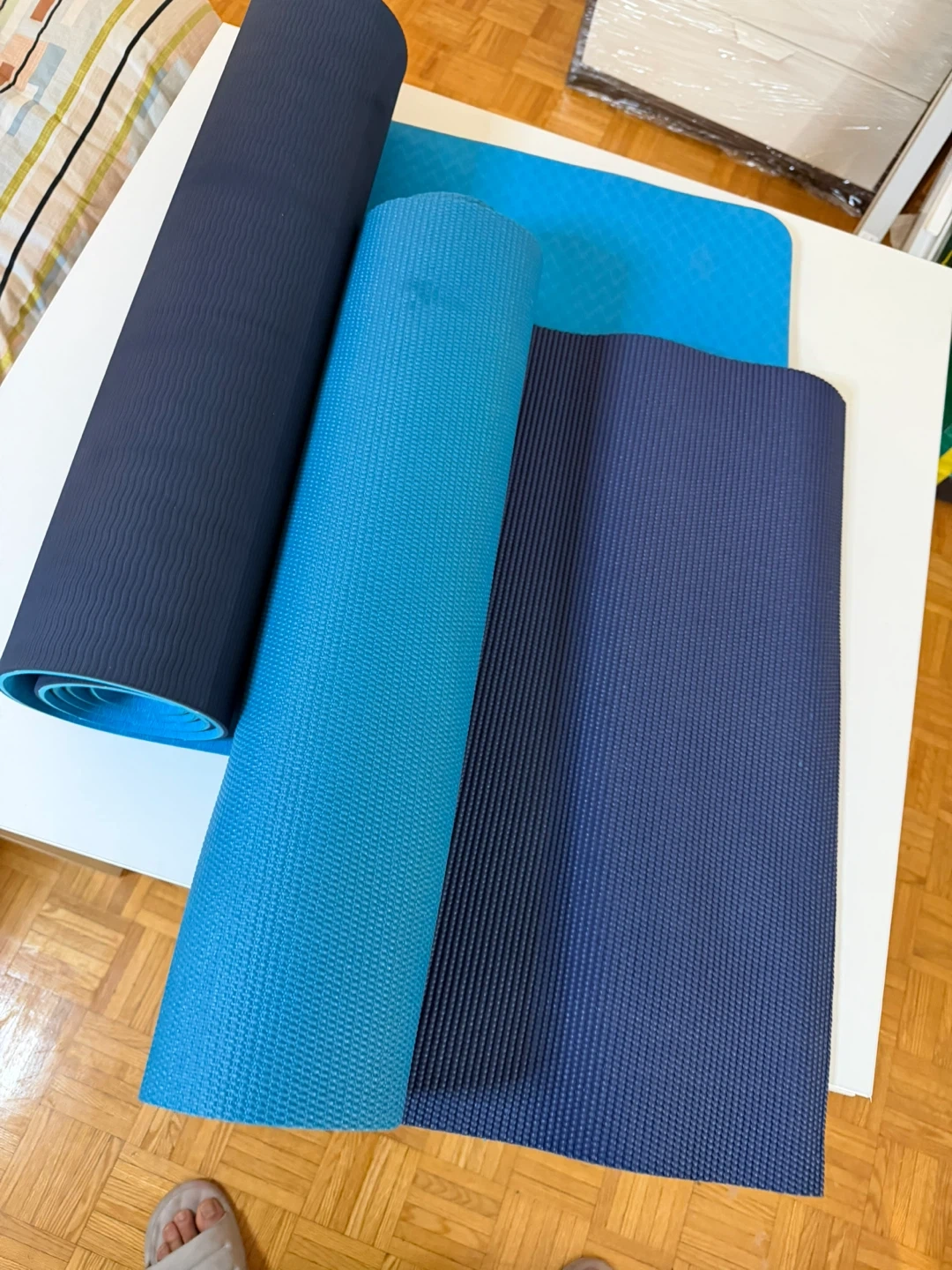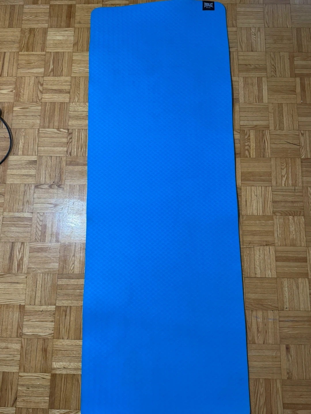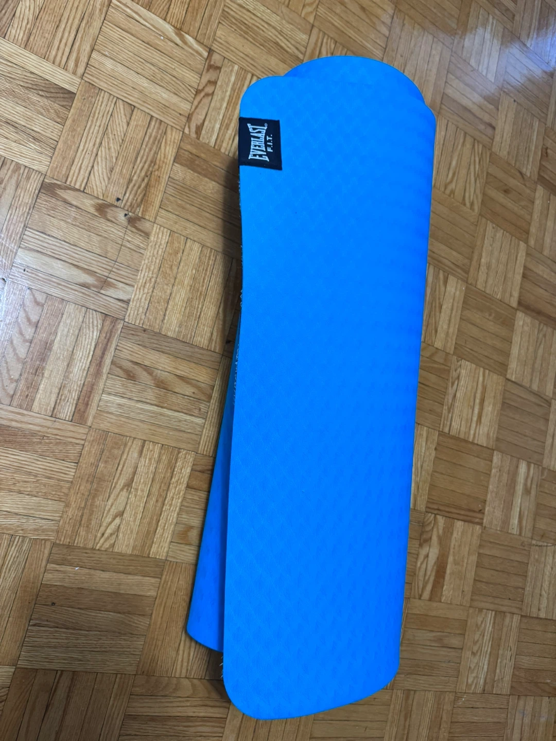 Includes two Gaiam yoga mats in blue and dark blue, plus one Everlast mat in bright blue. Non-slip texture for stability. Great for yoga or floor exercises!