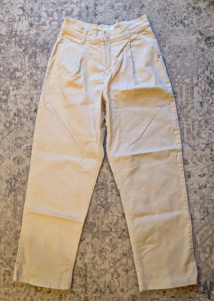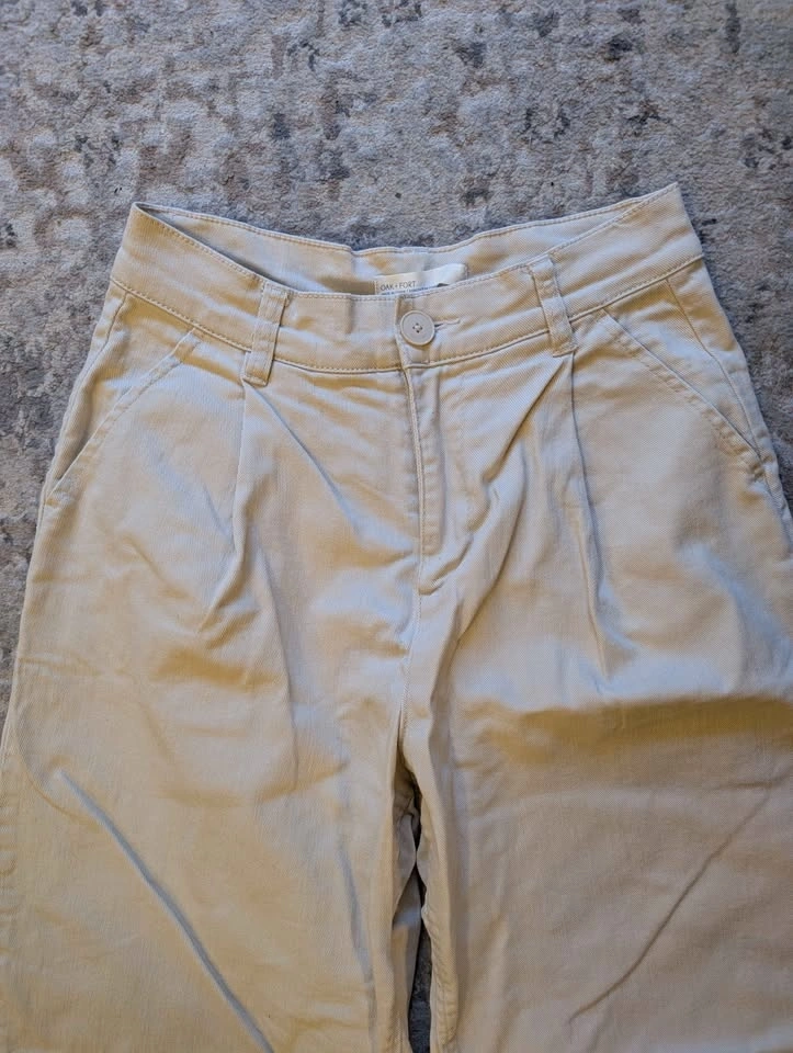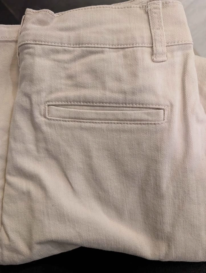 Unfortunately, these are a bit too small for me. They are made of very soft, yet thick and flexible denim. Features a single pleat for comfort. Off-white/oatmeal color. Condo pickup only in Burnaby near Edmonds Station. I can meet anytime and will provide the exact address. Please pick up at my building door.