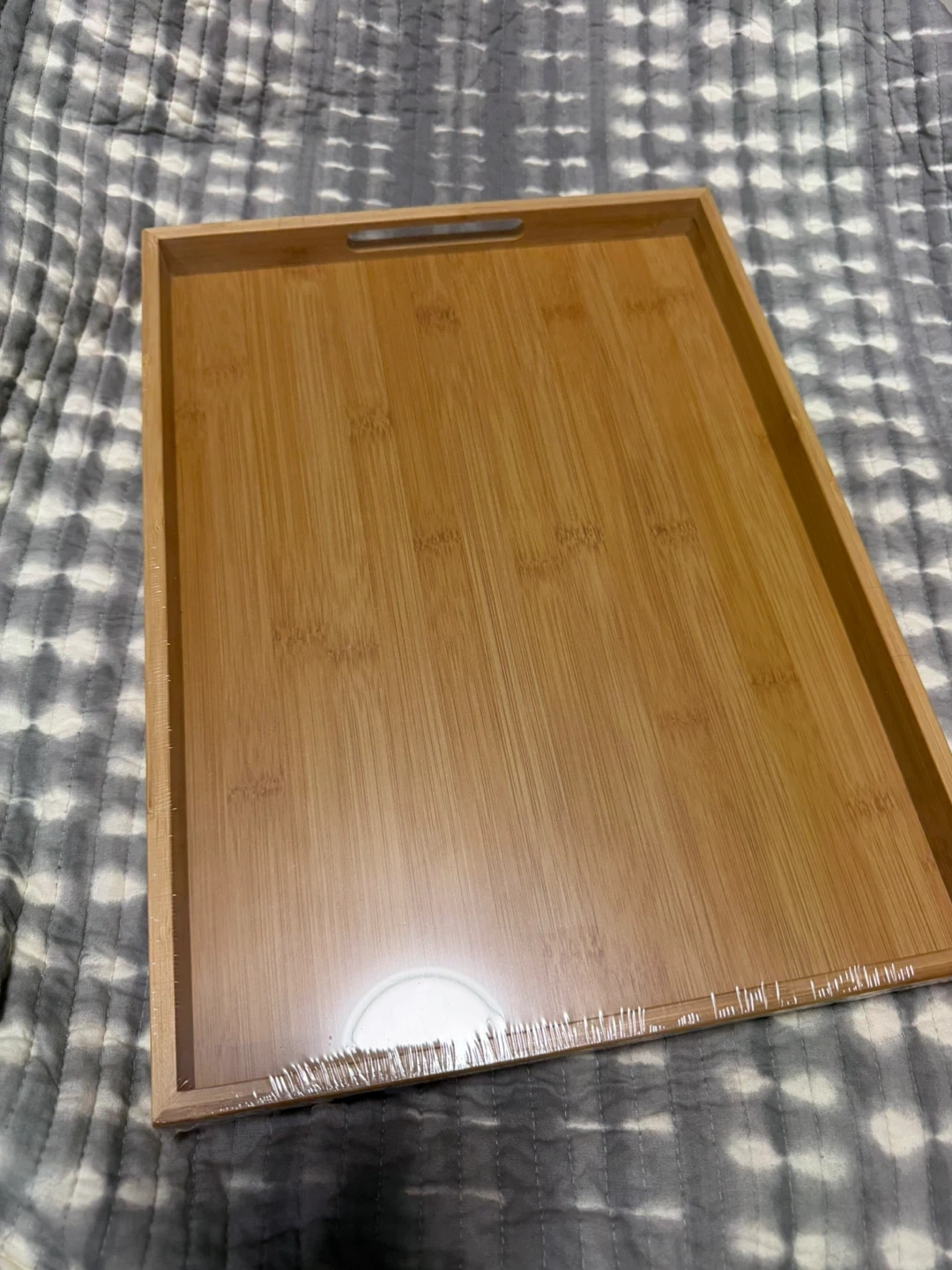 Bamboo serving tray with built-in handles. It's perfect for serving food or drinks. Made from natural bamboo material.