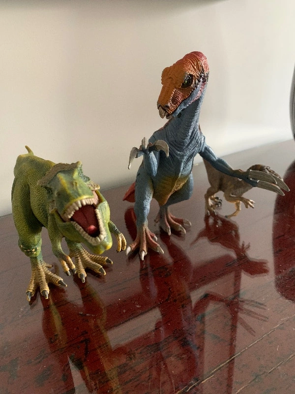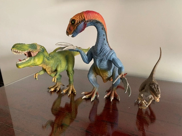 Selling as a set, three authentic SCHLEICH brand dinosaurs. This is a German brand of realistic hand-painted figures of high quality. Collectible.