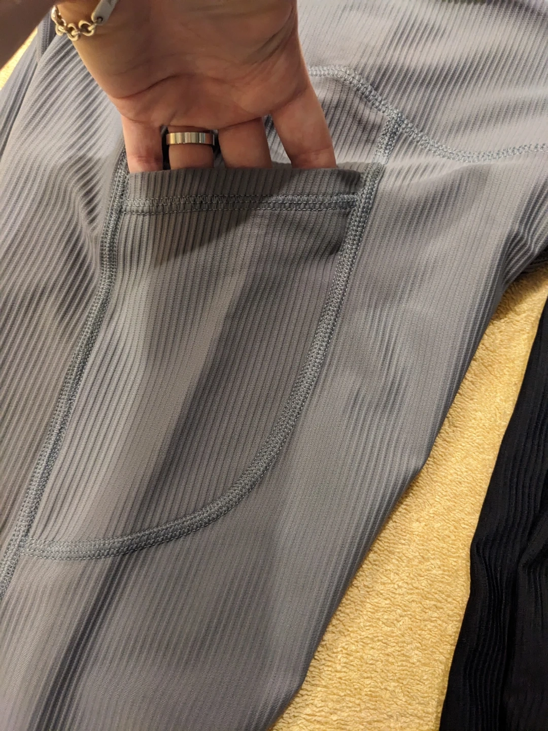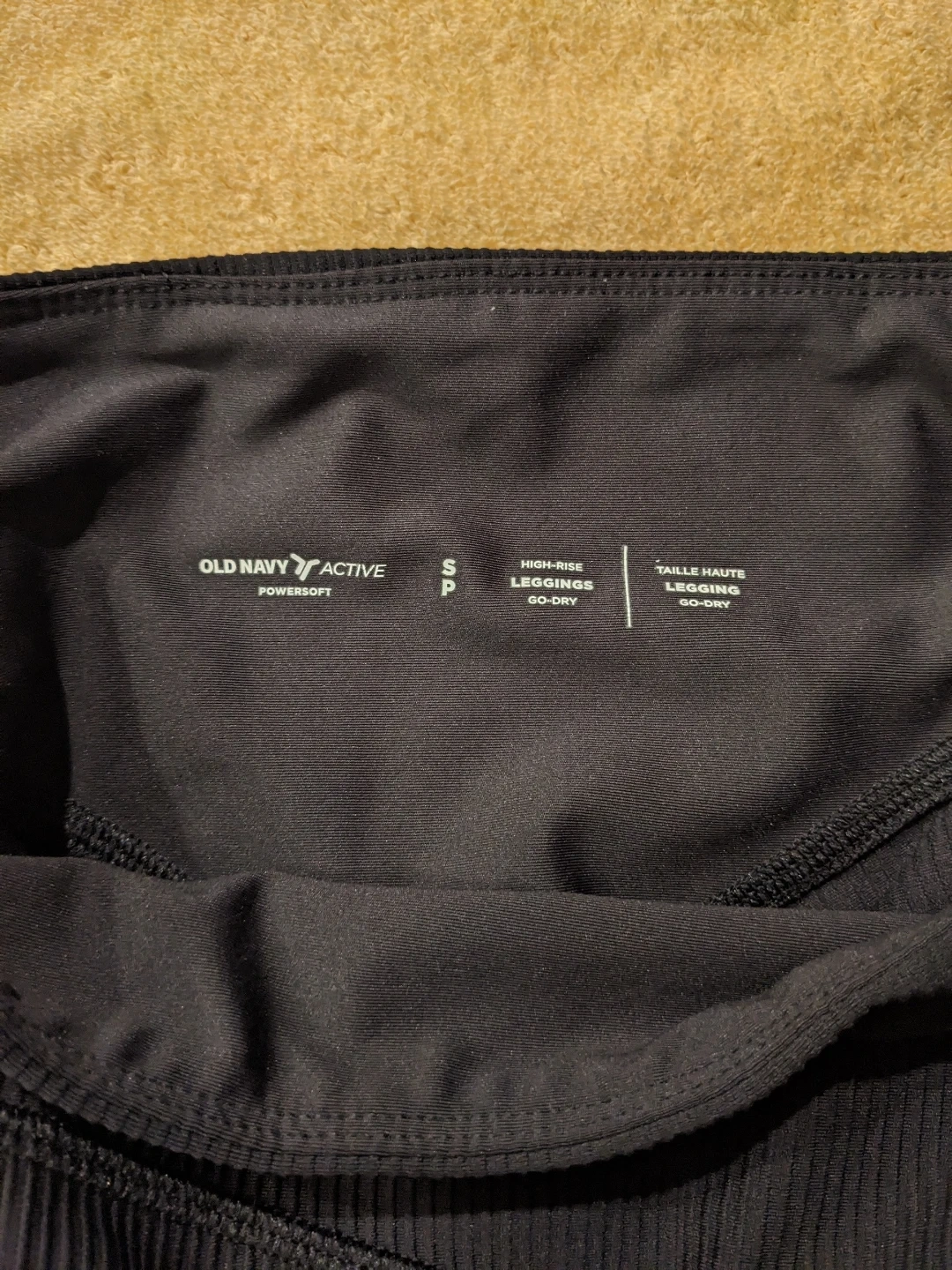 This set includes Old Navy Active PowerSoft ribbed high-waist leggings and bike shorts. The ribbed leggings have side pockets. One pair is grey (size small petite) and the other is black (size small regular). The bike shorts are size small and have a back waist pocket. Each pair have only been worn once.
