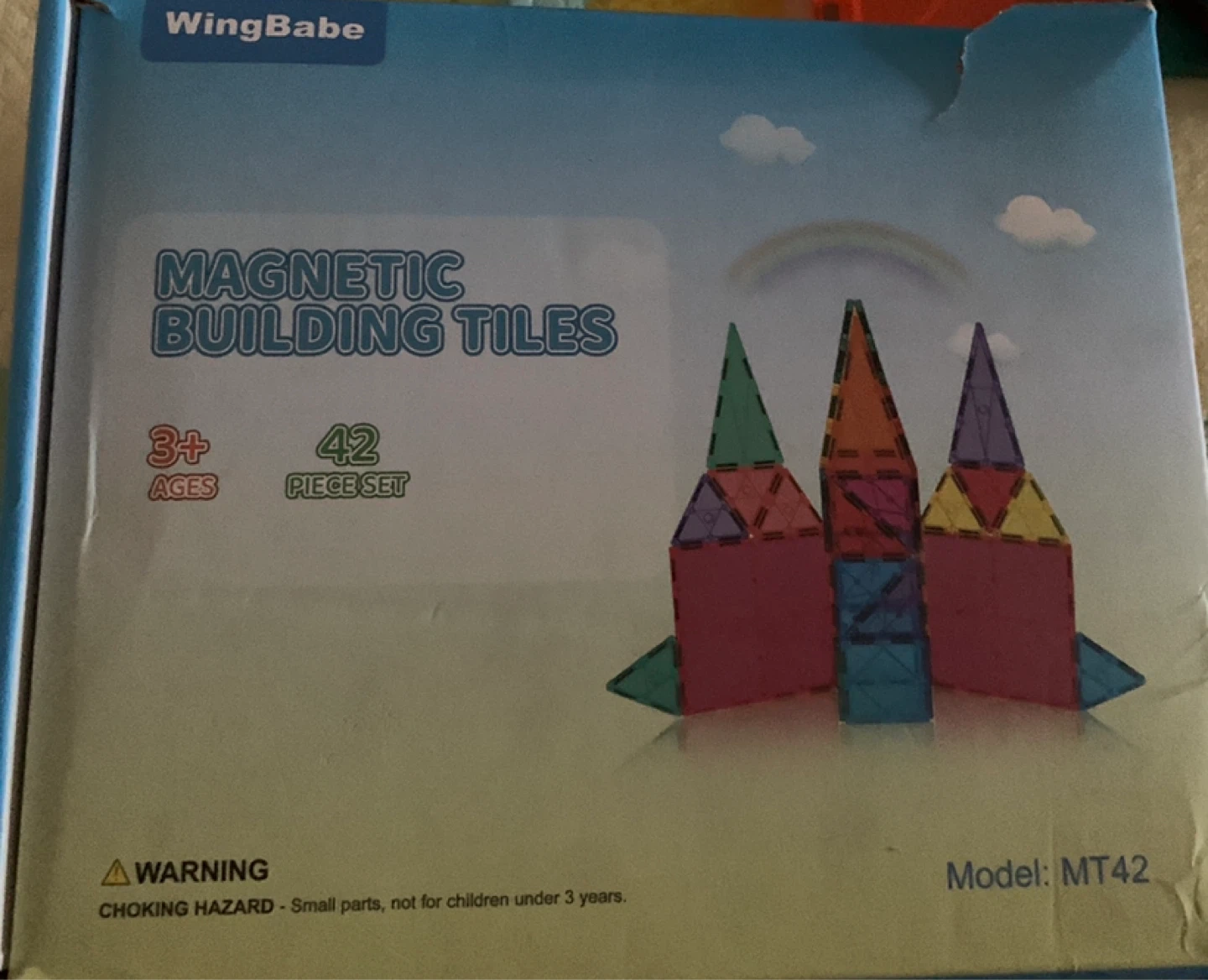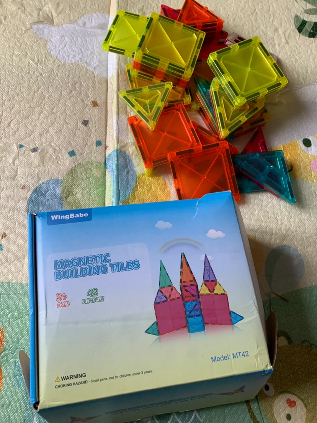 These magnetic building tiles come in a 42-piece set. Recommended for ages 3 and up. They're great for creative play and building structures!