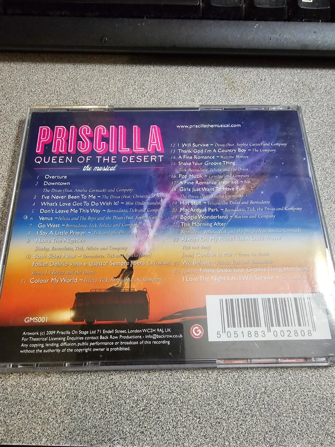 Original Australian Cast Recording for Priscilla Queen of the Desert, the musical. It features "I Will Survive" and "Go West". This CD includes 25 tracks from the show.