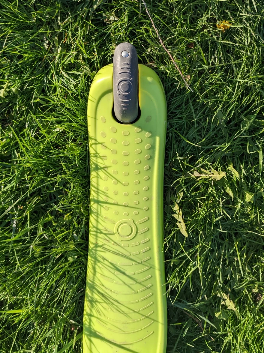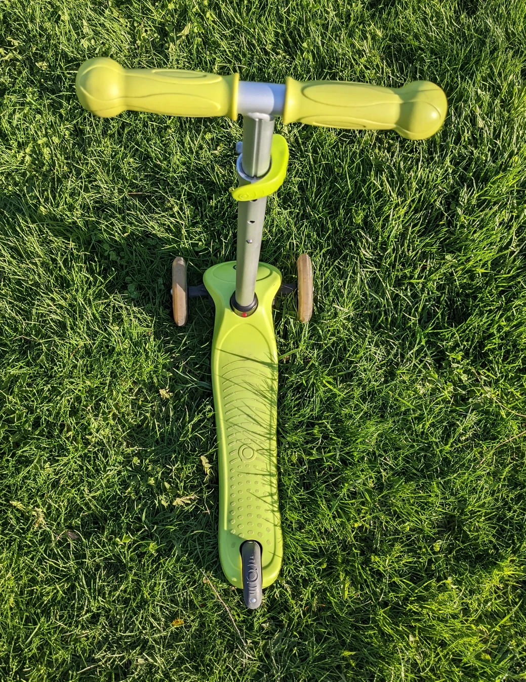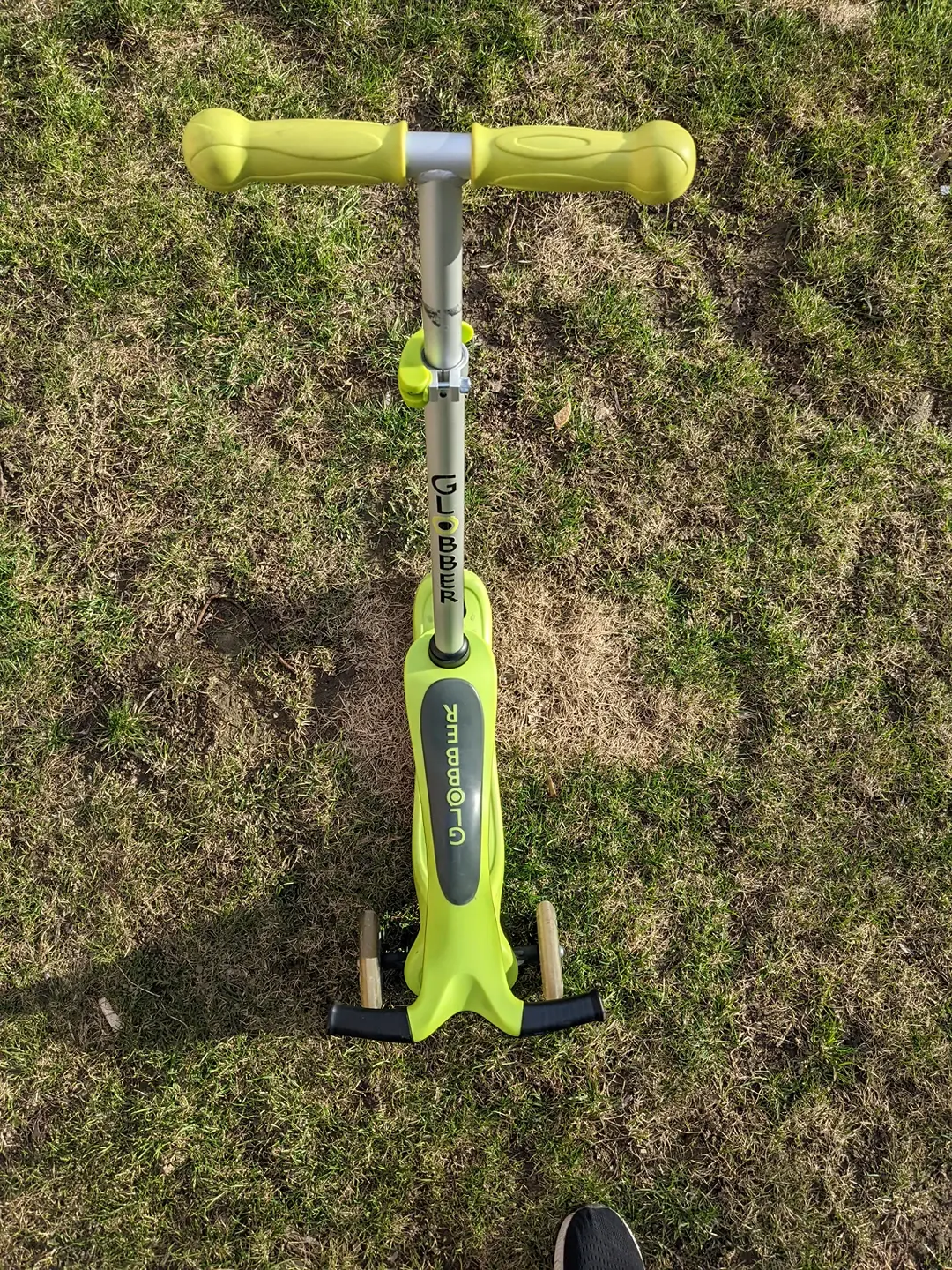 great condition. convertible scooter to push bike and balance bike. don't have the pic of it as a balance bike but you would just remove the stick / pole / bar that makes it a push bike. grows with your child. can use from 1.5 years and up. The scooter has 3 height adjustments. It retails for 130+ tax.