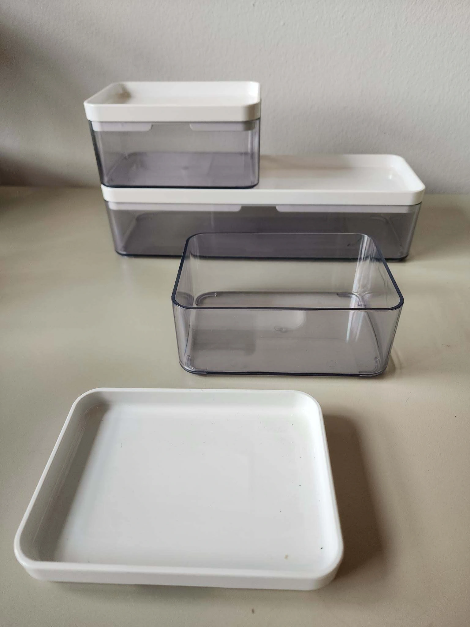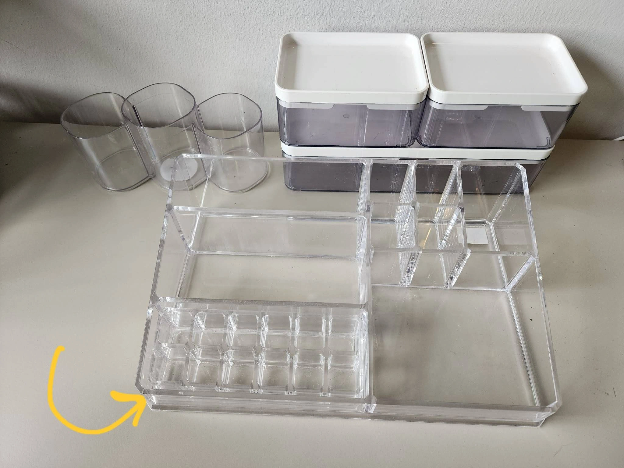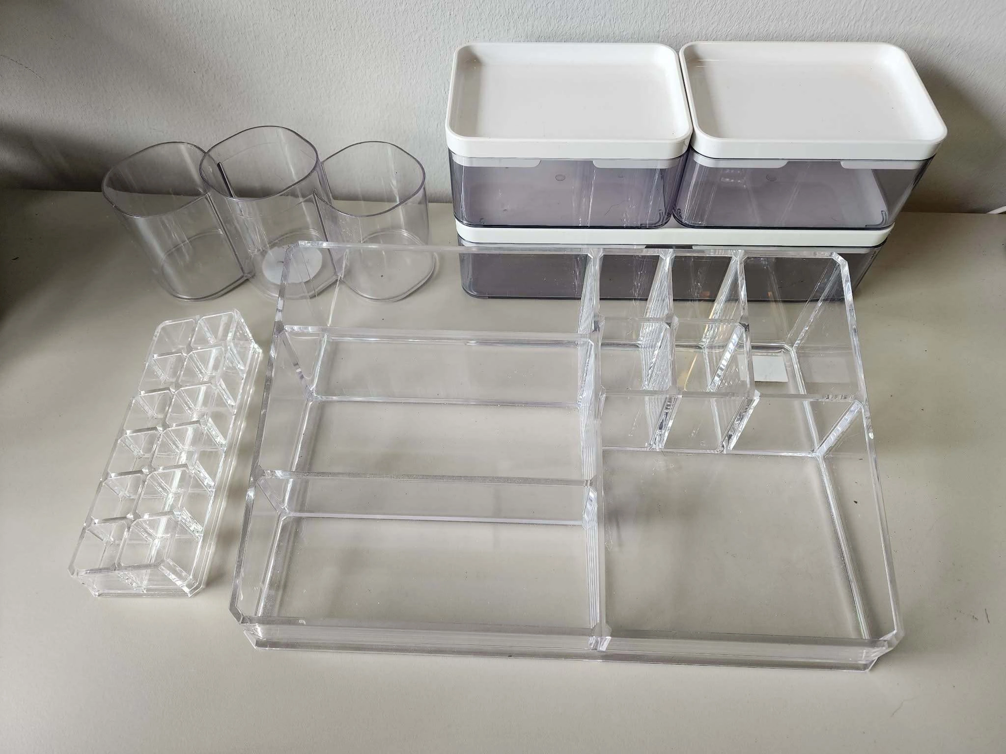 Clear plastic organizers/containers for makeup, art, crafting, hobbies, etc.