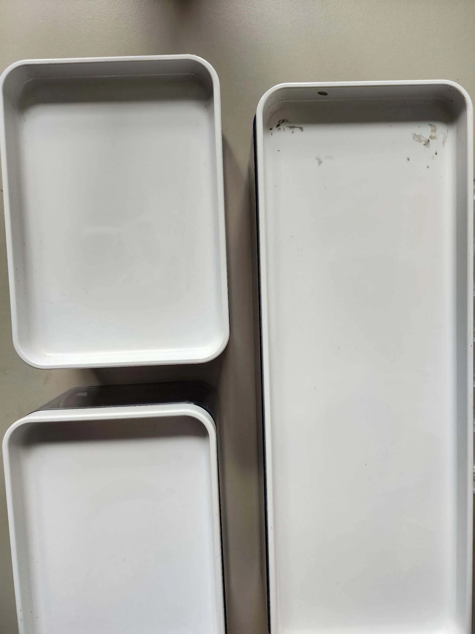 Some of the containers can nest with one another. Lid of larger container has some marks (see photos)