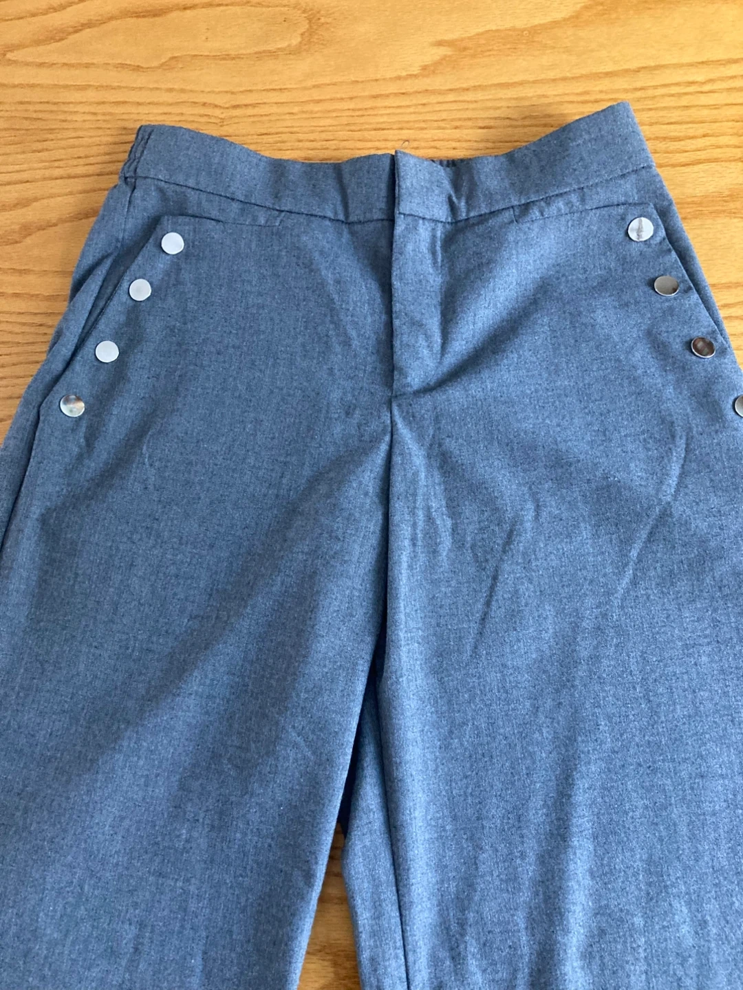 These ZARA Trafaluc Collection pants are a stylish slate grey colour. They're made in Morocco and feature a classic button-front closure. The size is medium. In excellent condition.