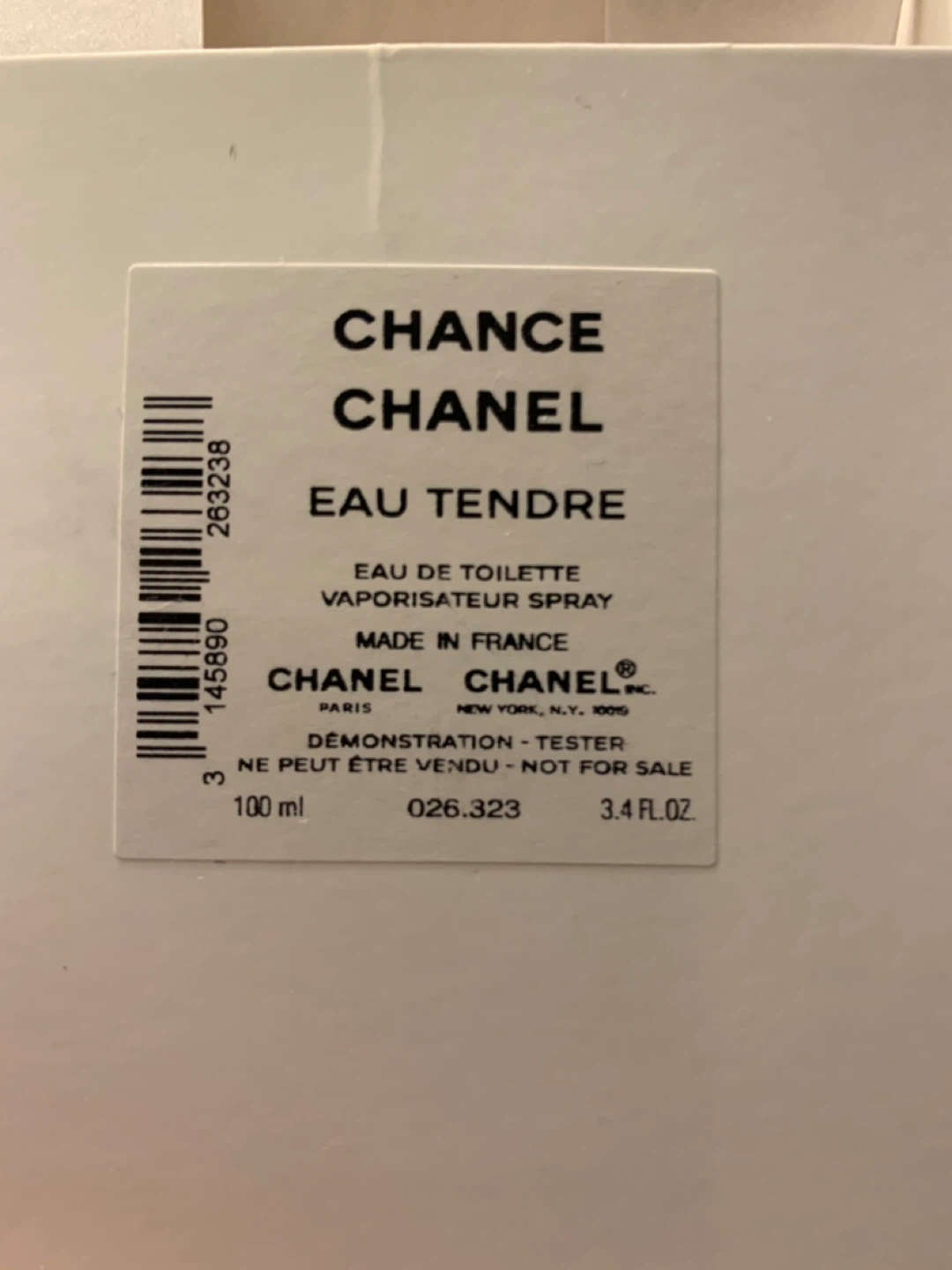 Selling a tester bottle of Chance Chanel Eau Tendre. It's a 100ml bottle of Eau de Toilette.