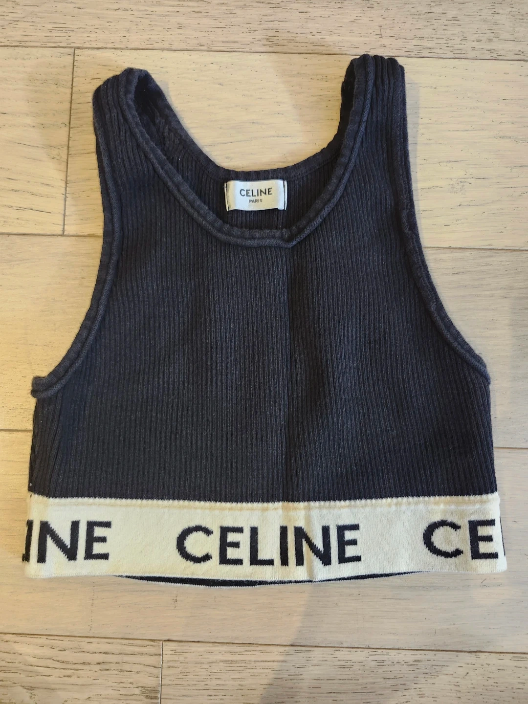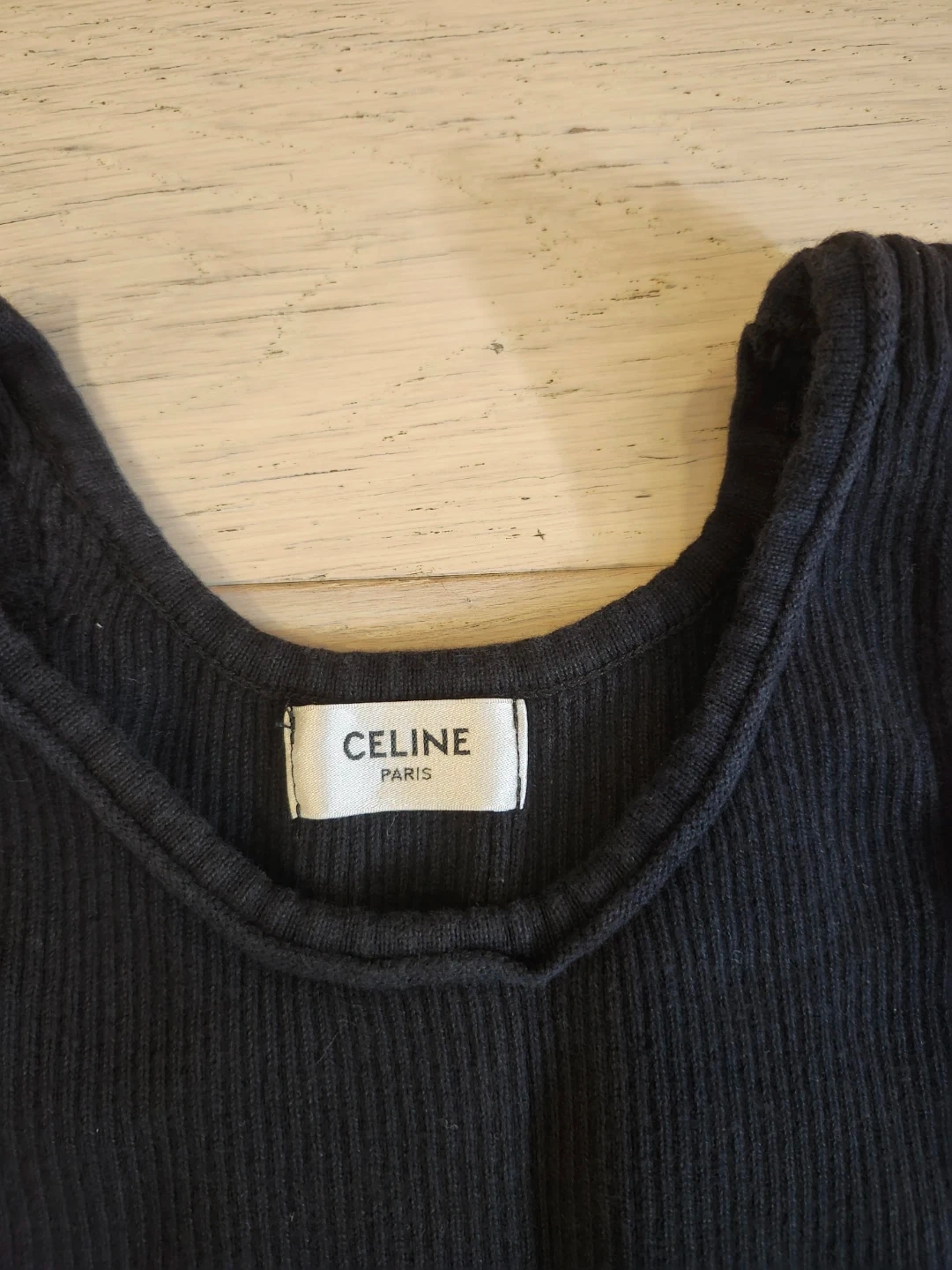 Selling a Celine Paris knit crop top in black. It's in great condition and ready for a new owner! Perfect for layering or wearing on its own, this stylish top adds a touch of luxury to any outfit.