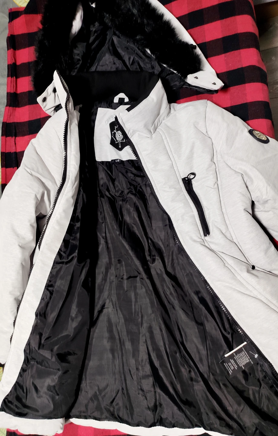 Selling an Oppenheimer Premium Outerwear jacket from the Arctic Expedition line! It's a light grey colour with a black faux fur hood. The size is L/G