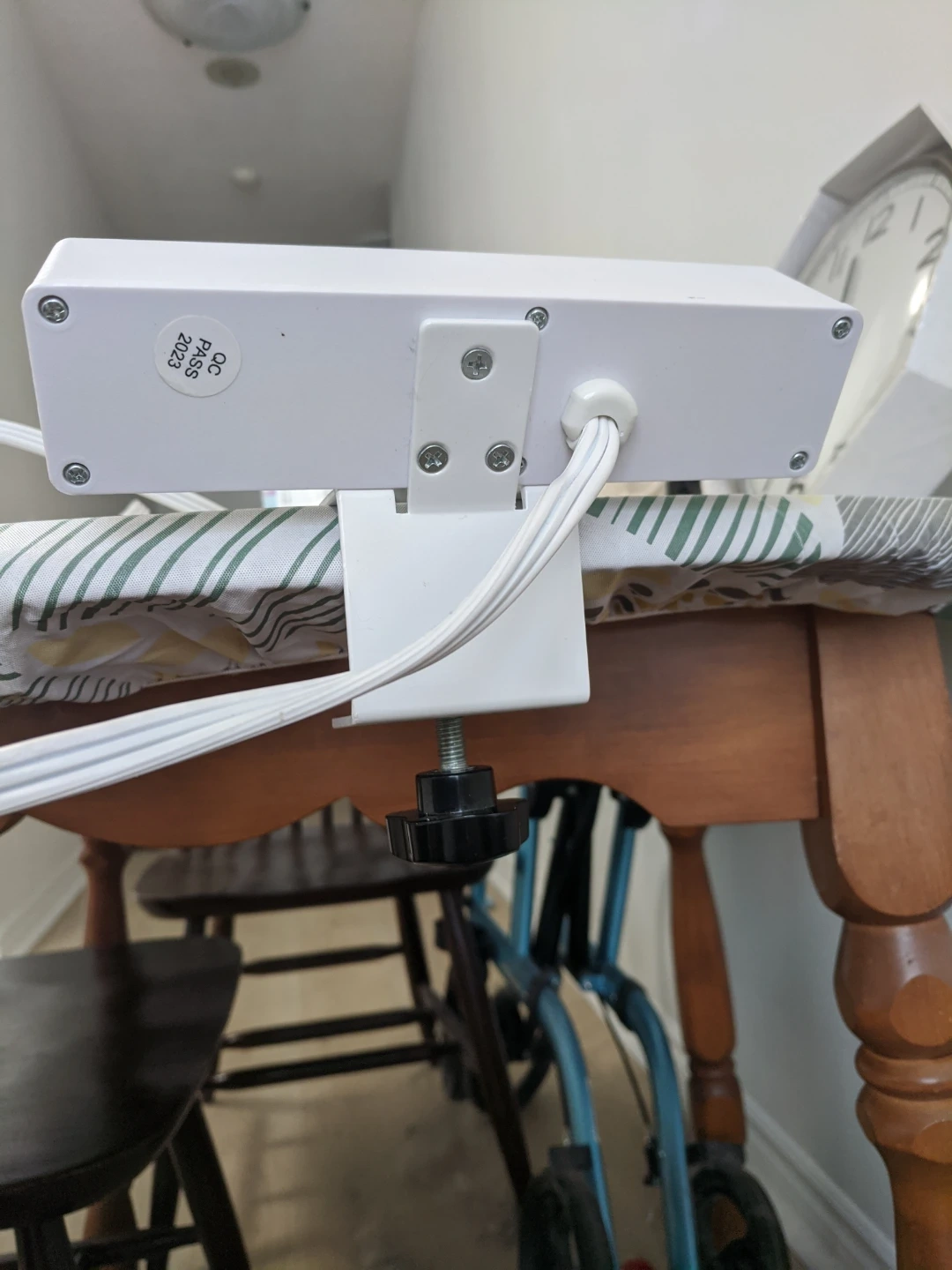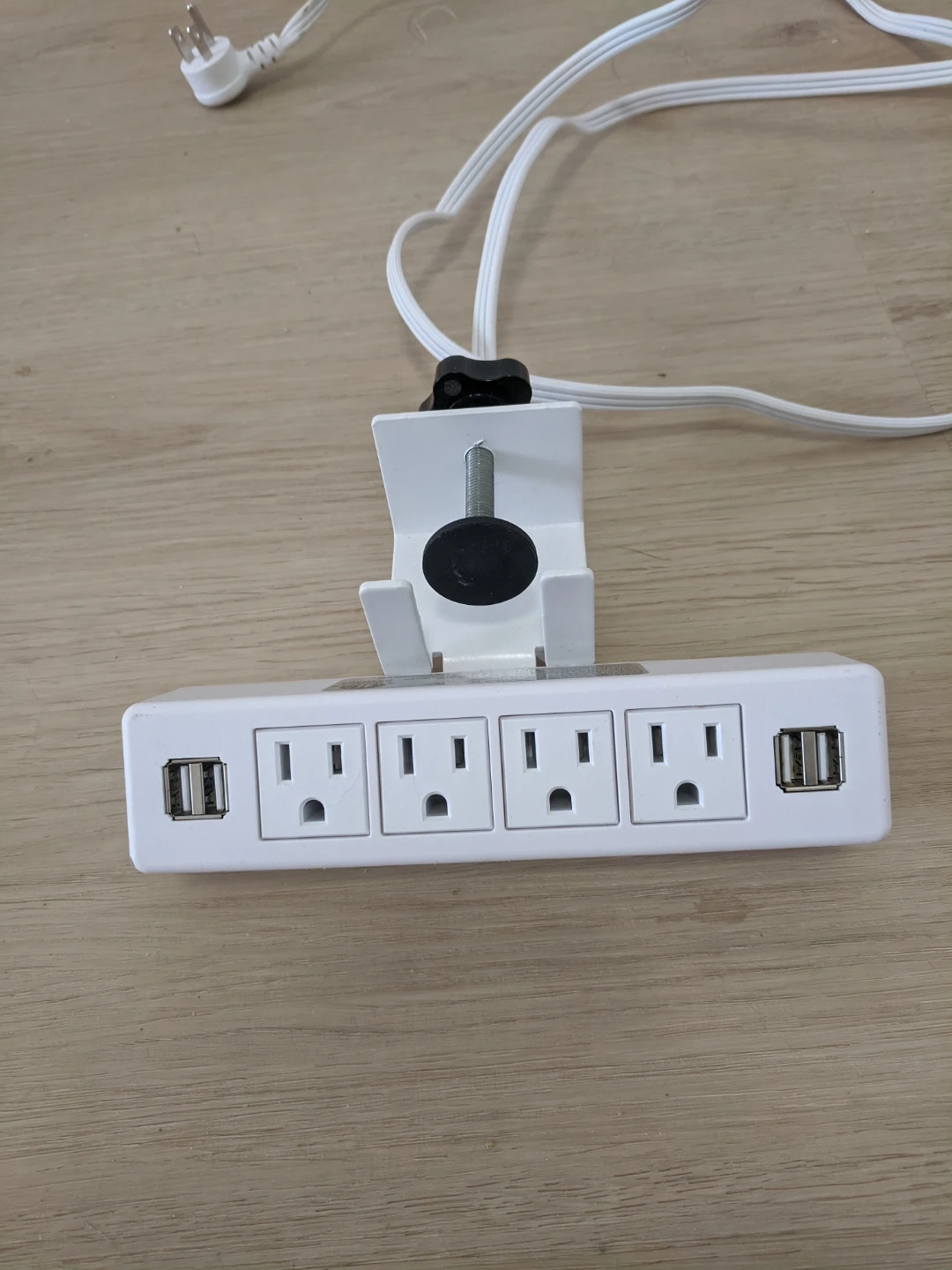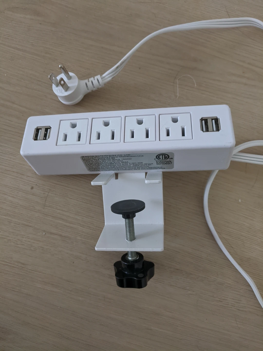 This white power strip has four AC outlets and two USB ports, perfect for charging devices. It features a clamp mount for easy attachment to table or desk surfaces. Ideal for desks or workspaces needing extra outlets and convenient charging options. Pick up at 195 Merton Street Toronto or pick up at Subway station Davisivill. And I can deliver it to your house but you need to pay me another $3. Thanks.