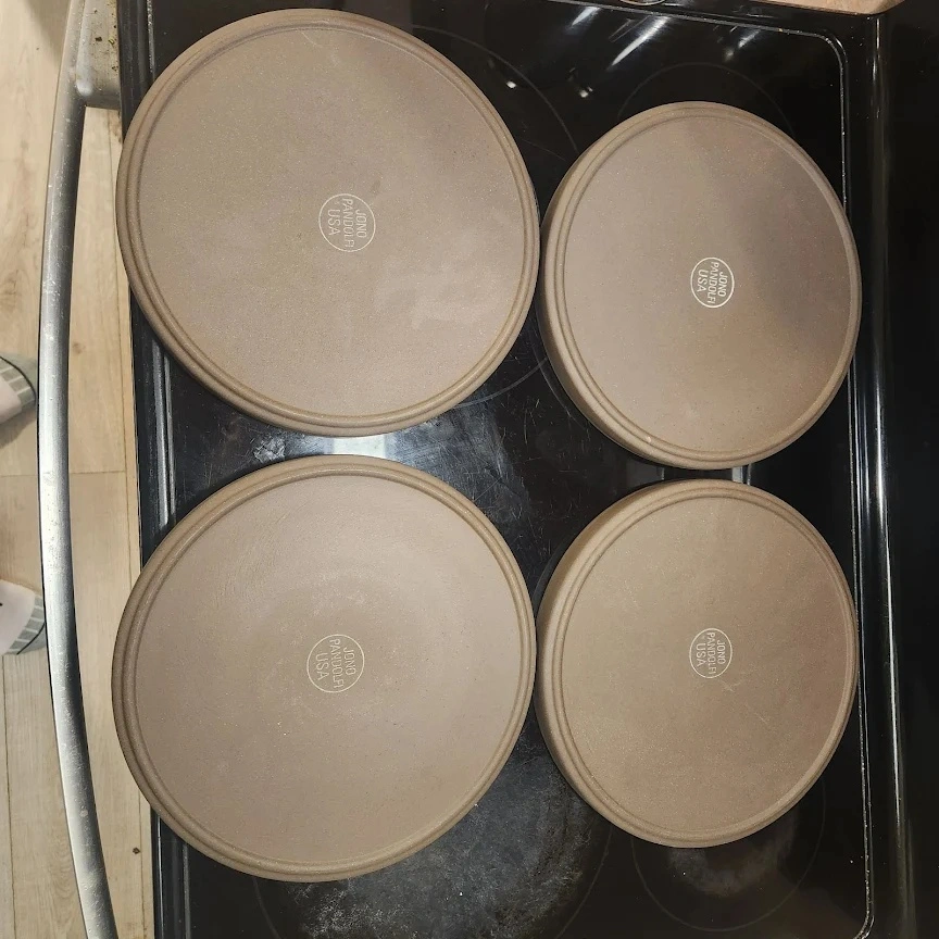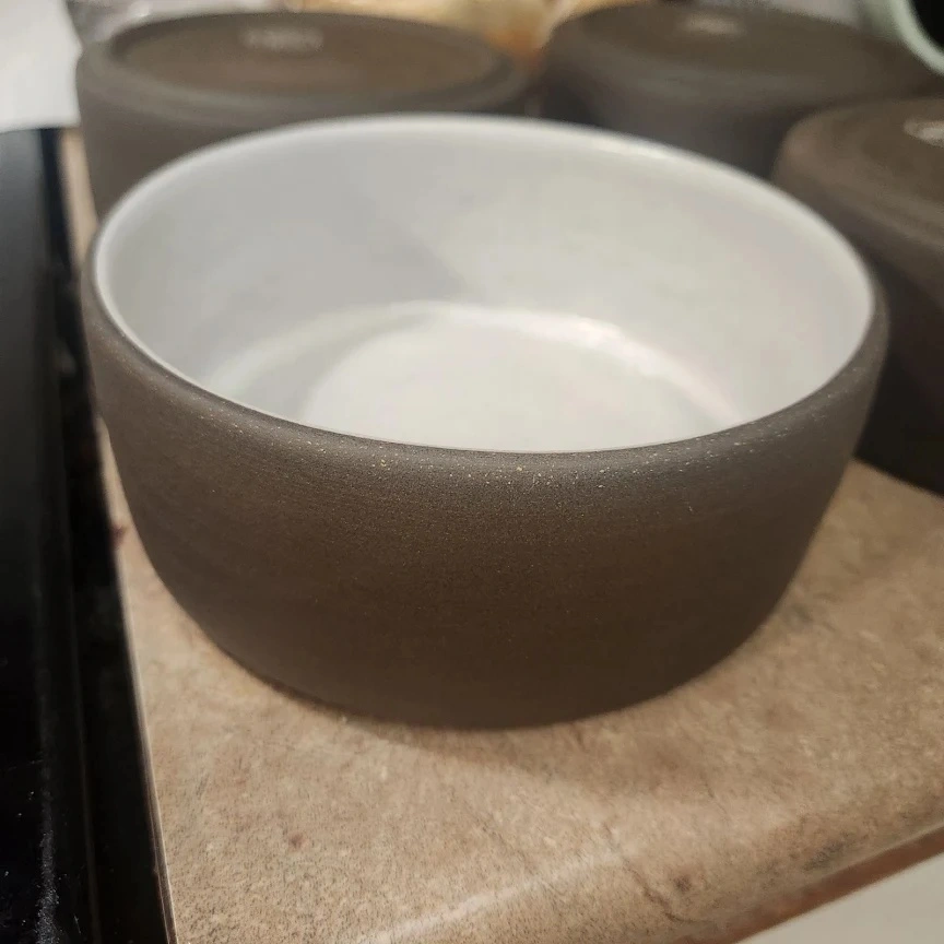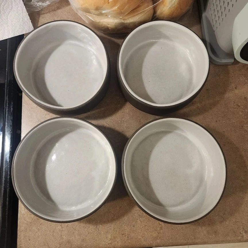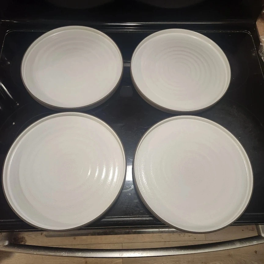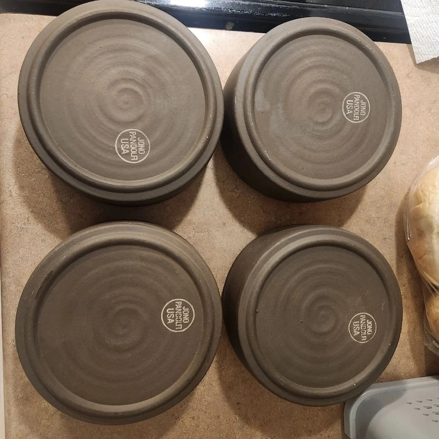 Jono Pandolfi finishes every bowl by hand, so each one is unique, with a slightly different spiral on its face. Vertical walls and foot rings make for seamless stacking. Made in USA. High quality ceramics. Dishwasher and microwave safe. These are high quality and will last a lifetime with proper care and handling. Salad Plates alone costs 52 USD retail each +tax, bundle up all for a deal. Pickup near north burnaby secondary school area. Cash preferred.
