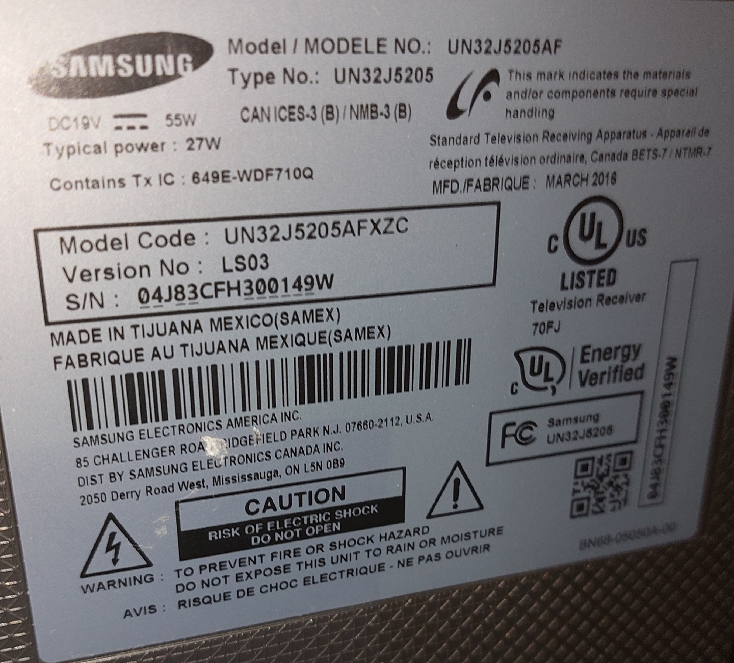 Selling a Samsung 32-inch Smart TV, model number UN32J5205AF. It's in good condition and ready for a new home. Enjoy easy access to your favourite streaming apps!