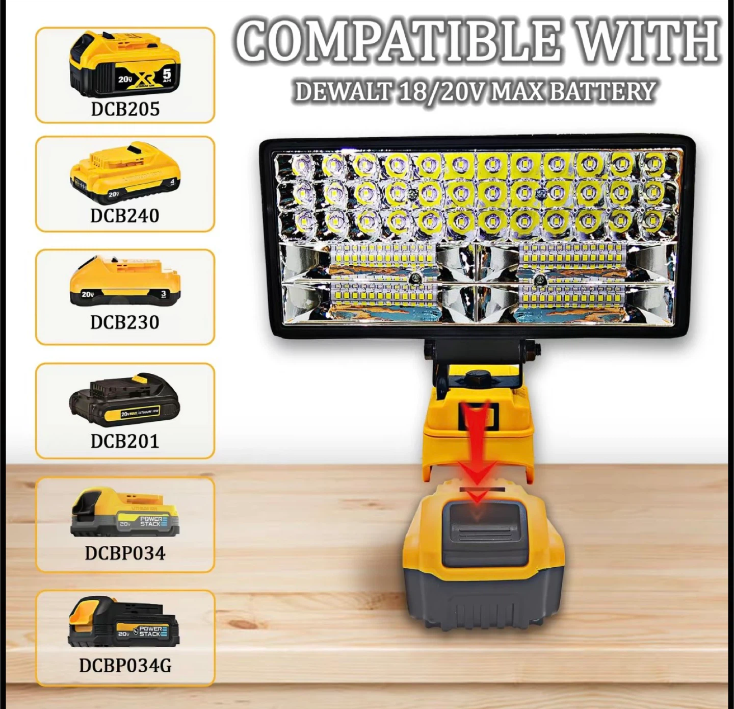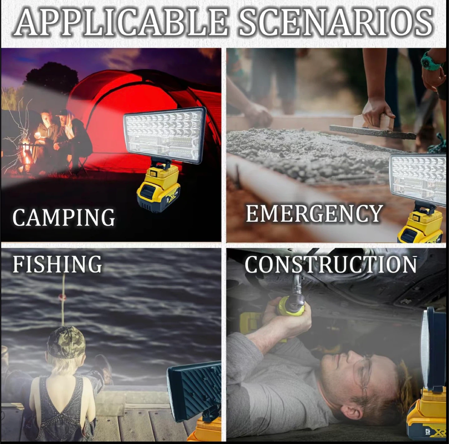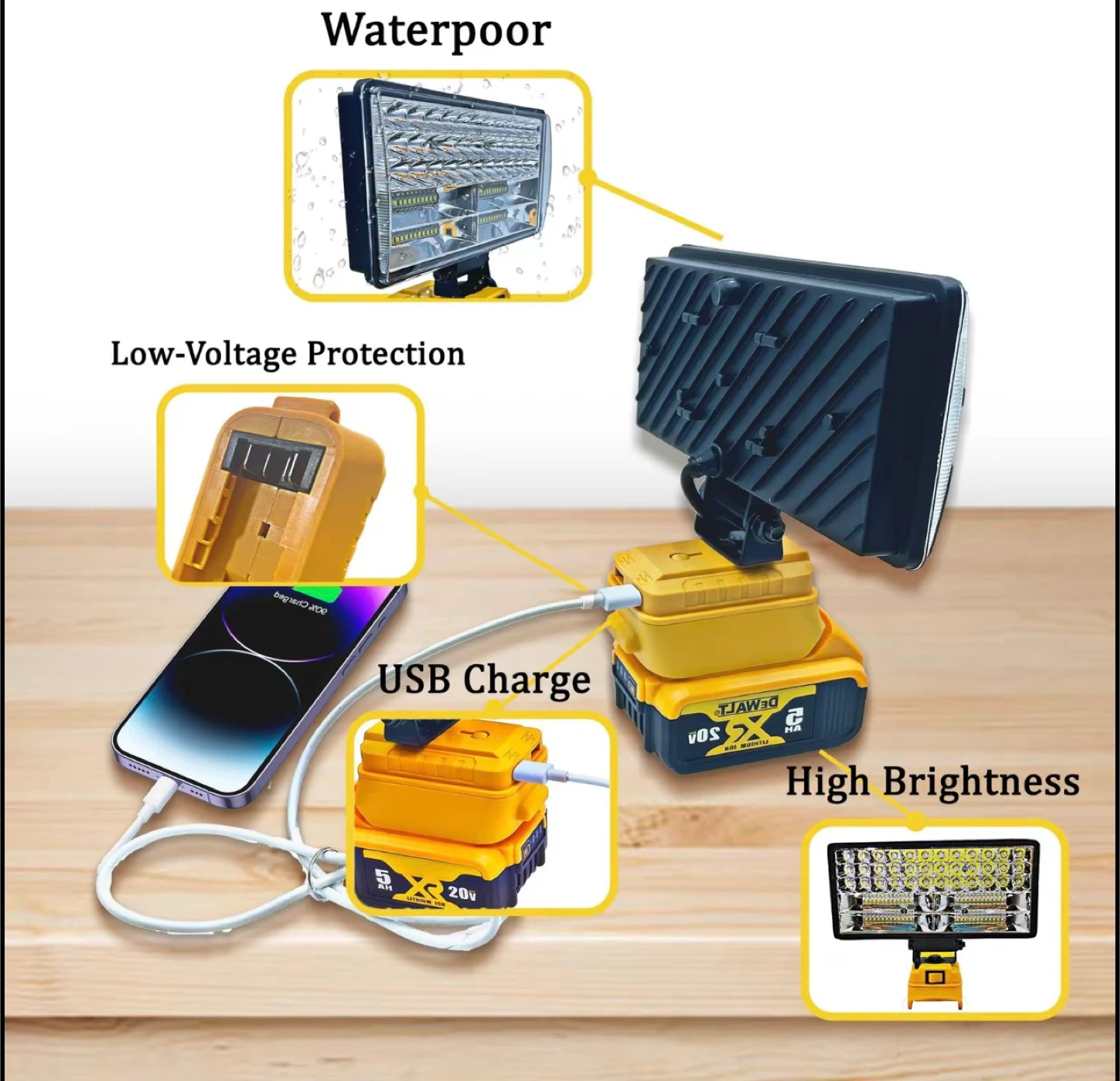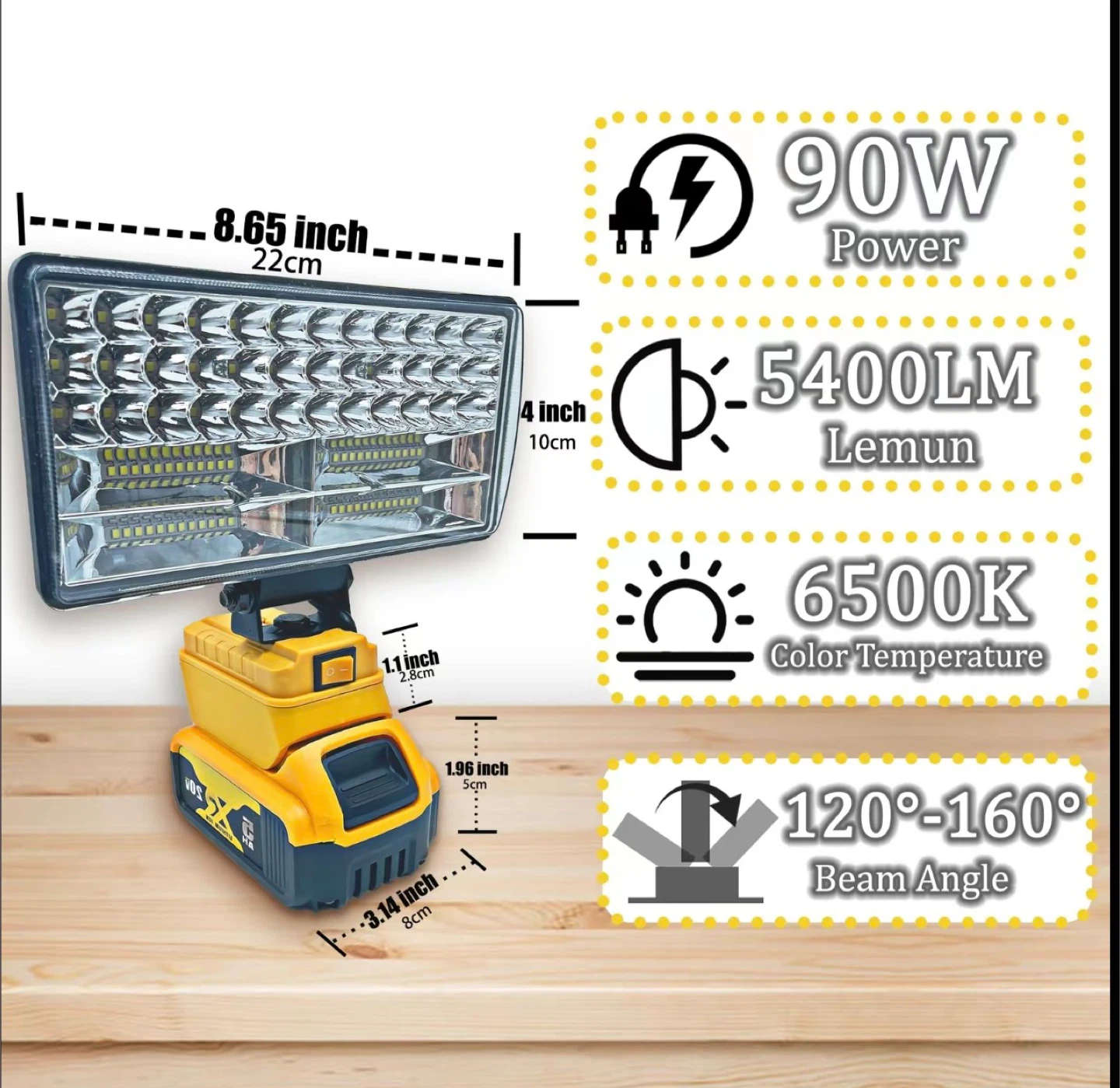Cordless LED Work Light for 20V Batteries 90W 5400LM Wide Beam Floodlight with Two USB Charging Ports for Camping Emergencies Workshops Garages(battery not included)
