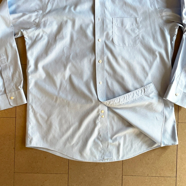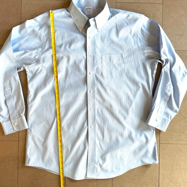 Pristine Brooks Brothers Men's Regent 100% Supima Cotton Shirt-Blue/White Tiny Houndstooth-Size 17 (XL). Has one front pocket. This is in like new condition. Beautiful crisp cotton. Measurements lying flat: Pit to pit: 24" Length: 30.5" Asking $45. Available for pick up in the Broadview/Danforth area. Contact-free porch pick up. Check out my other great stuff!