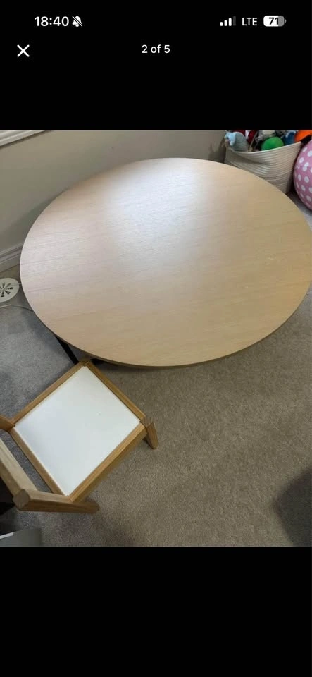 Measurements: 39.5 inches in diameter. 12 inches in height. All measurements are approximate. Some dings on surface, see in photos. $100