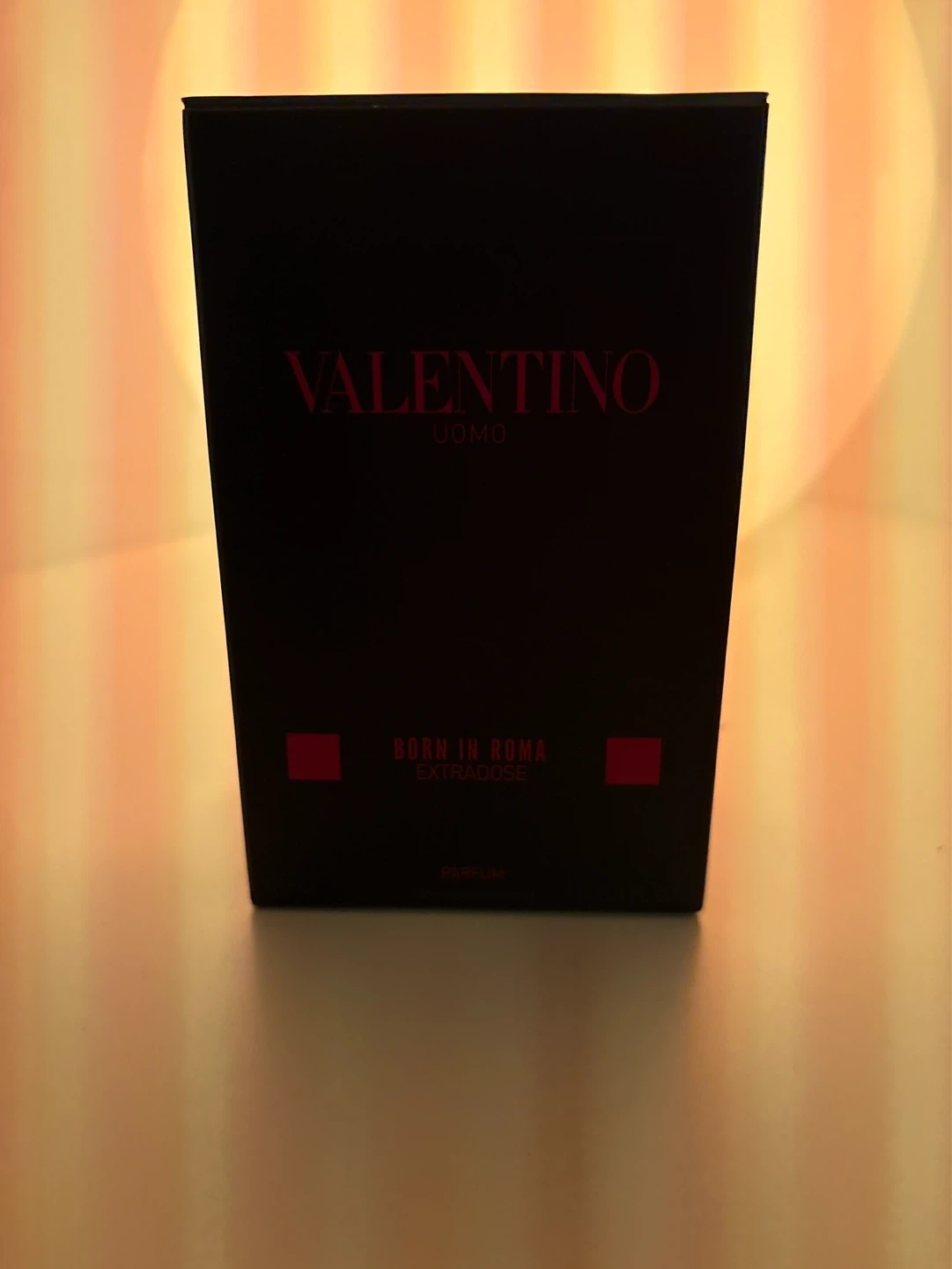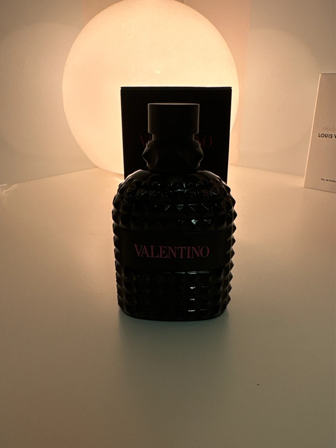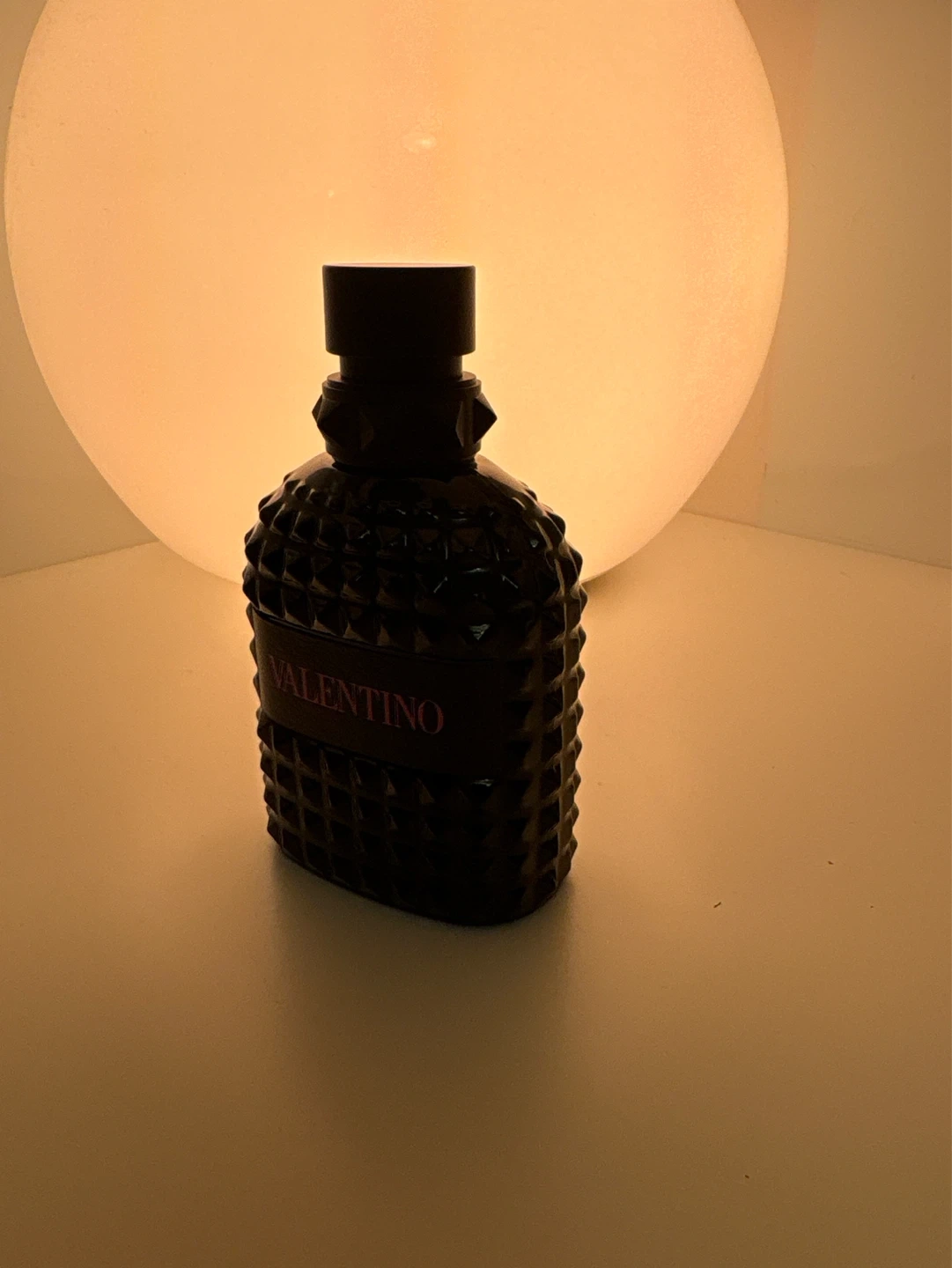 This is the Valentino Uomo Born in Roma Eau de Parfum. It comes in a black studded bottle.
