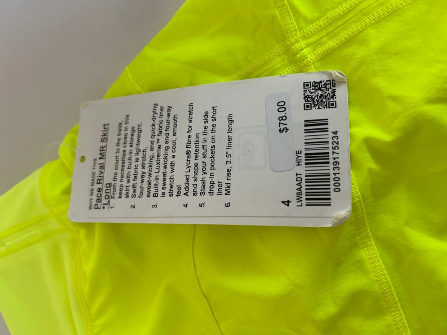 Lululemon Pace Rival Run Skirt - Size 4 - Neon Yellow