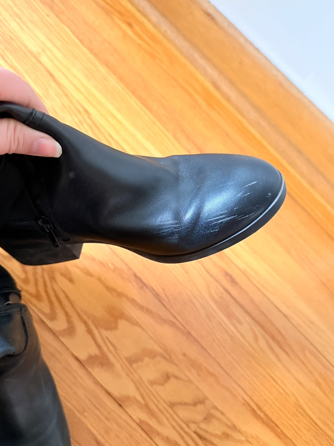 Selling a pair of black knee-high boots. They have some scuffs and signs of wear, as shown in the photos. They're still in good condition for everyday use!