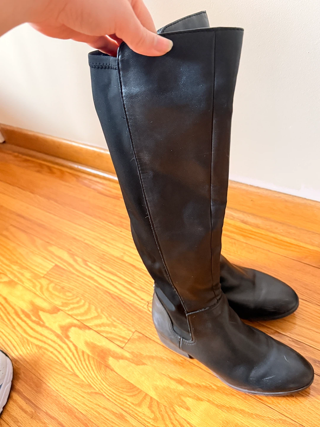 Selling a pair of black knee-high boots. They have some scuffs and signs of wear, as shown in the photos. They're still in good condition for everyday use!