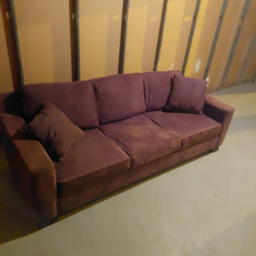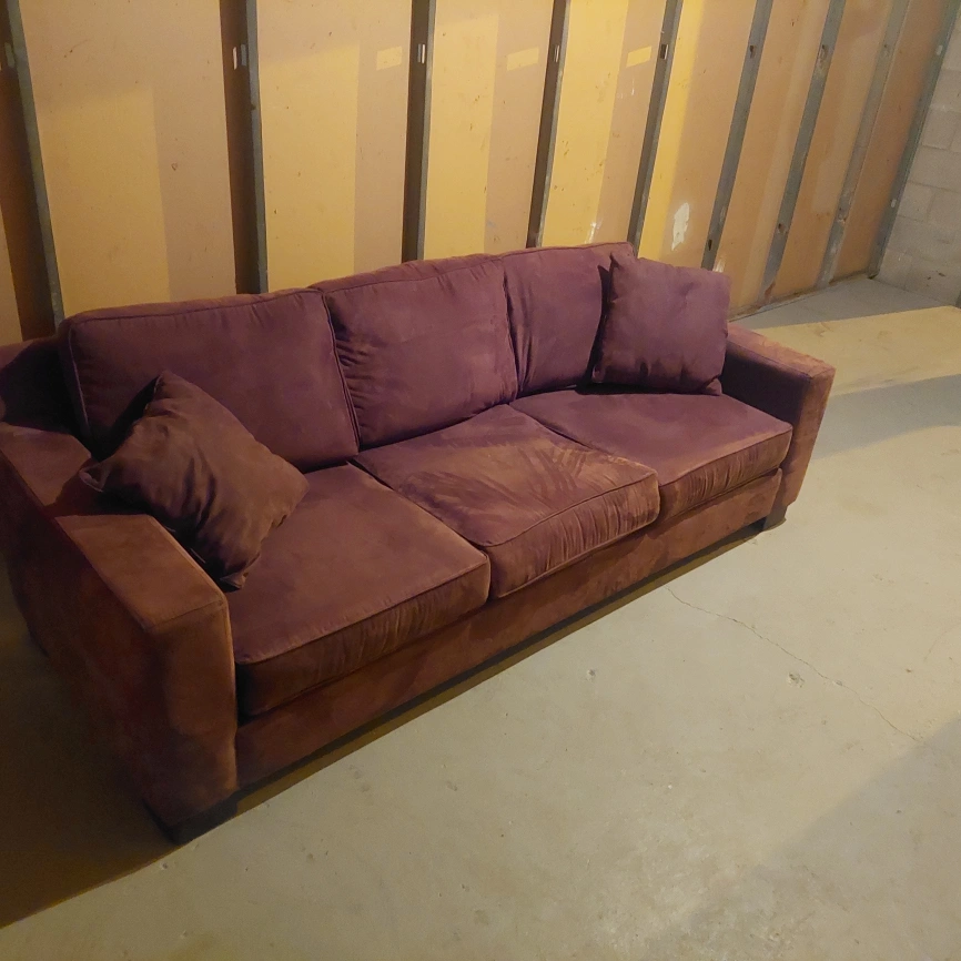 A comfy brown sofa looking for a new home! It's in great condition and comes with the cushions shown in the pictures. Perfect for a living room or basement hangout space brown