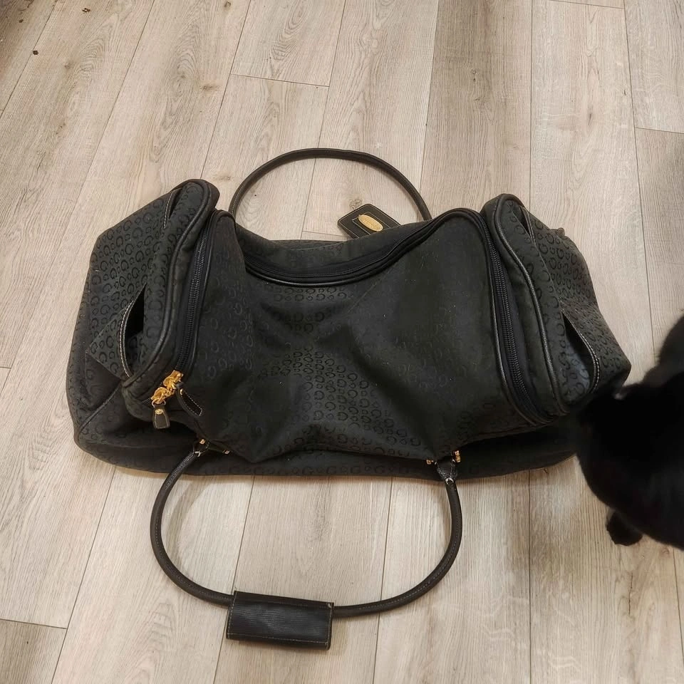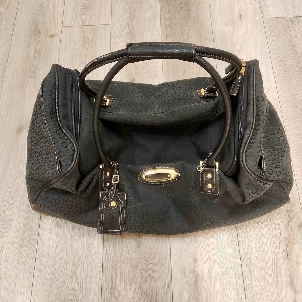 This is a Guess by Marciano Y2K era travel duffle bag. It's from their higher-end line, featuring genuine leather and quality hardware. The bag is durable and holds up well. Measurements are approximately 25" length x 12" wide x 12" high. It has been used for a few trips but has no major rips or holes. Let me know if you need more pictures or have questions. Pickup is near North Burnaby Secondary School. Prefer cash.
