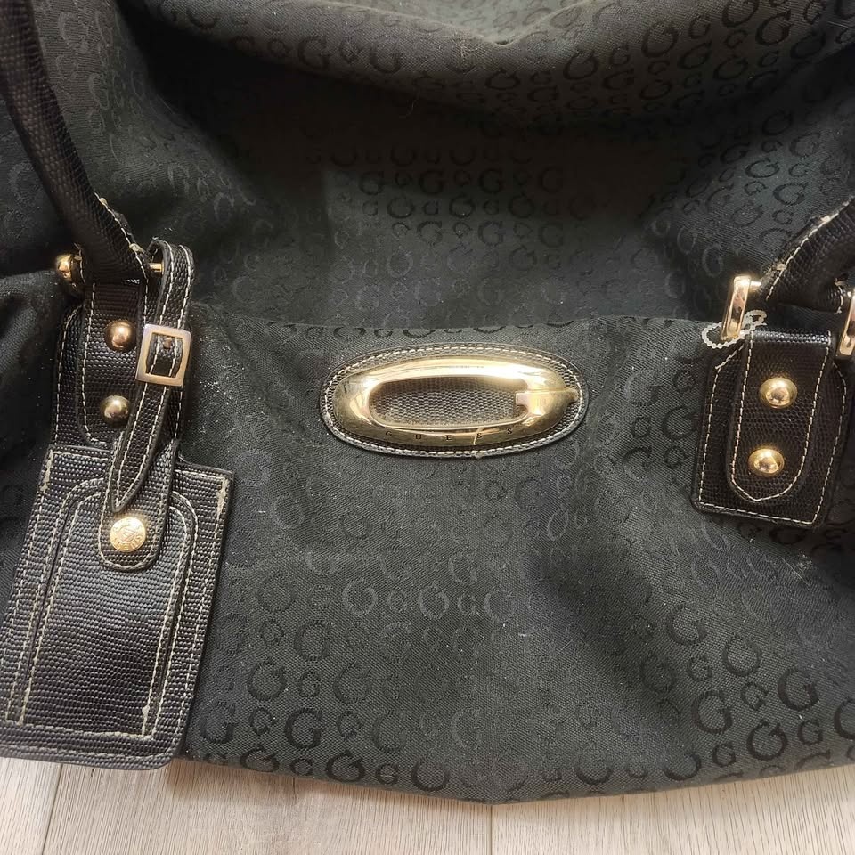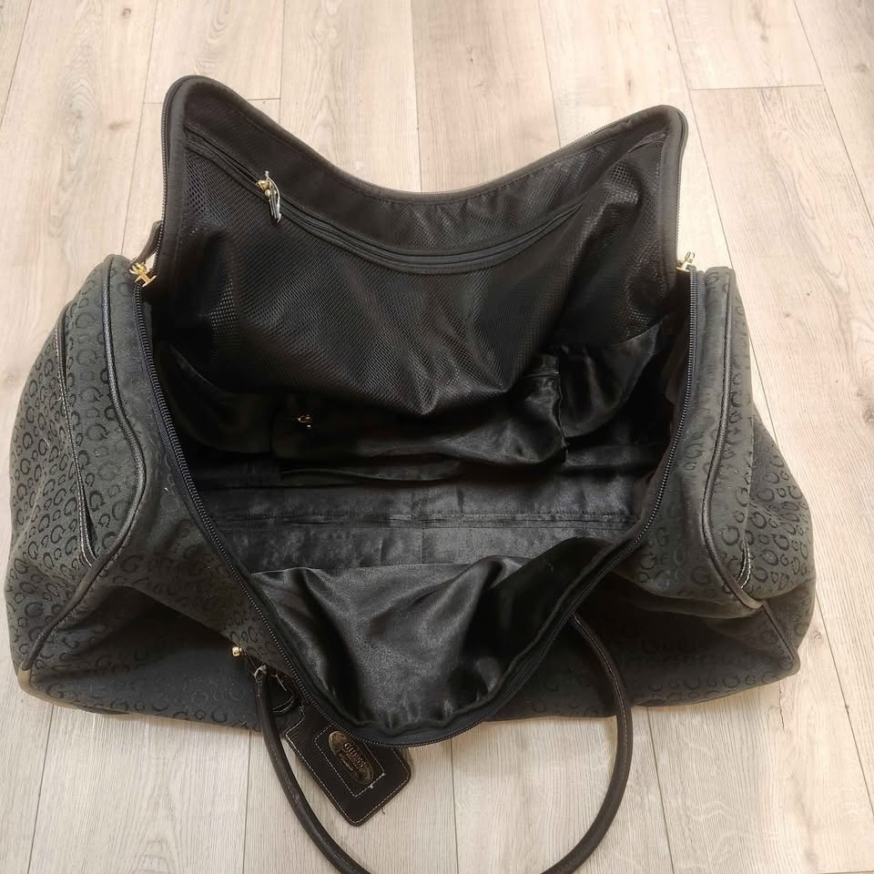 This is a Guess by Marciano Y2K era travel duffle bag. It's from their higher-end line, featuring genuine leather and quality hardware. The bag is durable and holds up well. Measurements are approximately 25" length x 12" wide x 12" high. It has been used for a few trips but has no major rips or holes. Let me know if you need more pictures or have questions. Pickup is near North Burnaby Secondary School. Prefer cash.