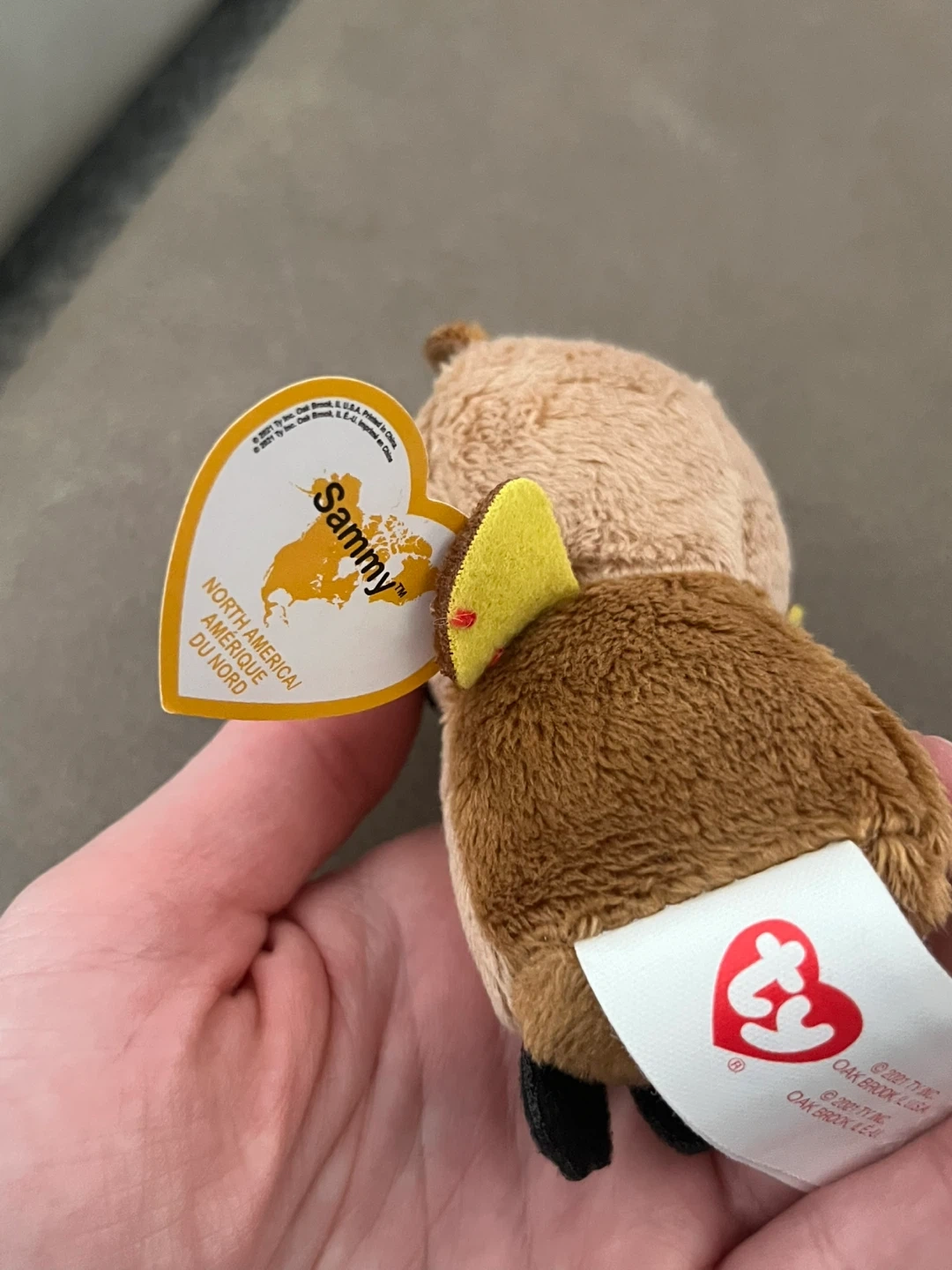 Buy & SellTy Beanie Boos Sammy Owl PlushTy Beanie Boos Sammy Owl Plush$5This is a Ty Teenie Beanie Boos plush named Sammy. It's an owl with a fluffy brown and tan body and sparkly eyes. Included are the original tags.ConditionNewWHERE TO MEETCheck LocationView MapSELLERverifiedSaraDevonsleigh22916 reviews0 chats·0 favorites·3 viewsSEND CHAT TO SELLERHi Sara! I’m interested in your listing.Hi Sara! I’m interested in your listing.Get the Karrot app to chatSign In to chat