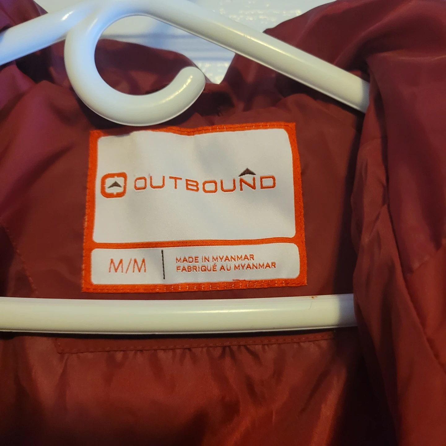 Warm red puffer jacket from Outbound. Made in Myanmar. Size medium/medium.