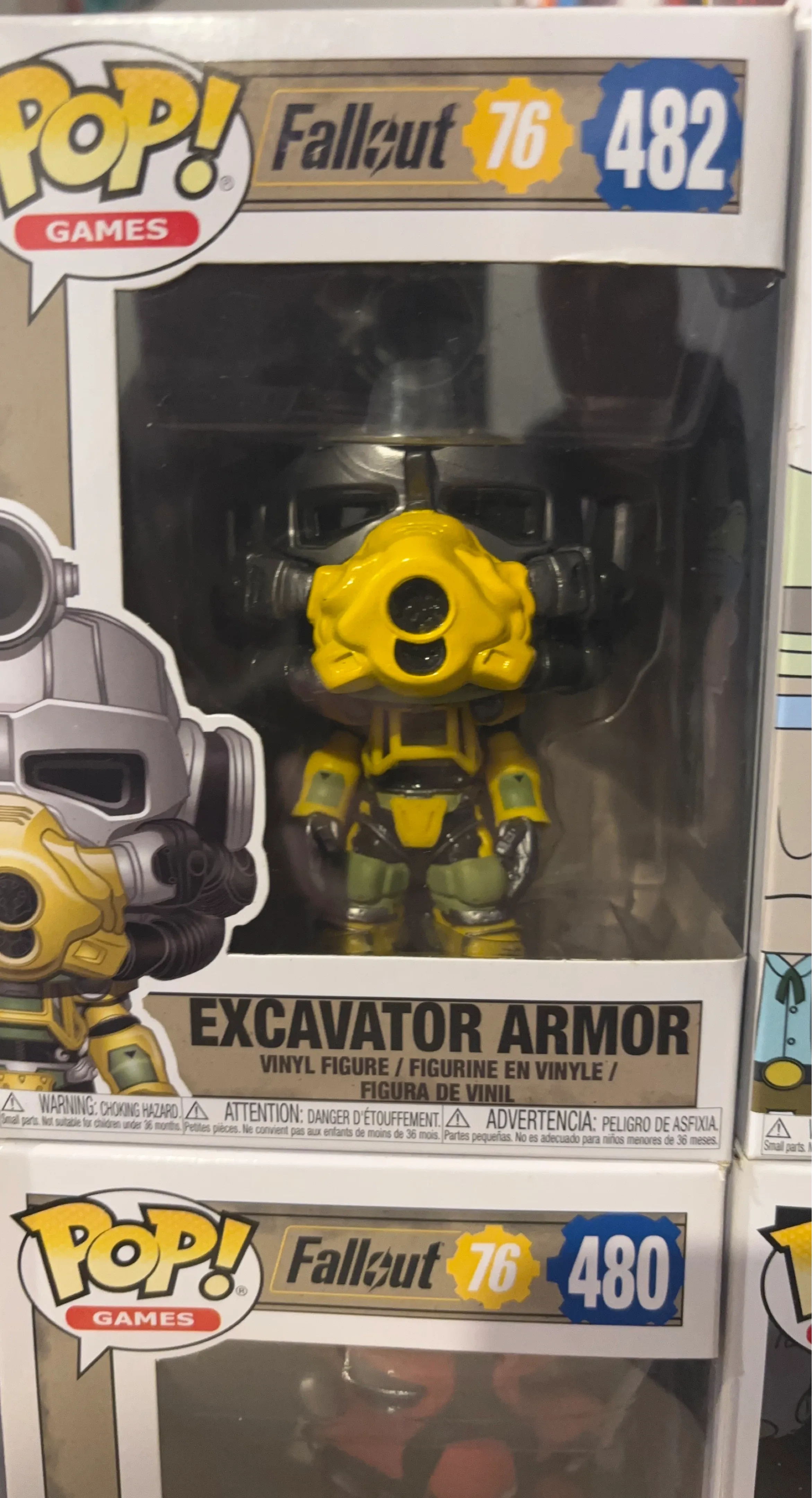 This is the Funko Pop! Fallout 76 Excavator Armor vinyl figure, number 482. It's a collectible vinyl figure from the Fallout game series. This item comes in its original packaging.