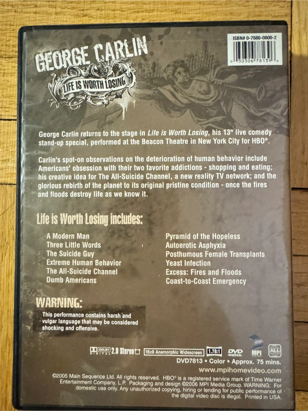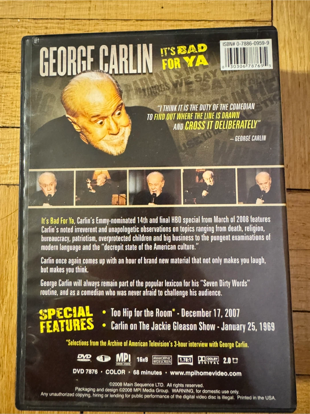 Buy & SellGeorge Carlin DVD Collection - Comedy SpecialsGeorge Carlin DVD Collection - Comedy Specials$10Selling a collection of George Carlin comedy specials on DVD! Includes: - Life is Worth Losing - It's Bad for Ya - Carlin at CarnegieConditionLike newWHERE TO MEETAvenue Road and Wilson AvenueView MapSELLERverifiedSarahArmour Heights802 reviews0 chats·0 favorites·3 viewsSEND CHAT TO SELLERHi Sarah! I’m interested in your listing.Hi Sarah! I’m interested in your listing.Get the Karrot app to chatSign In to chat