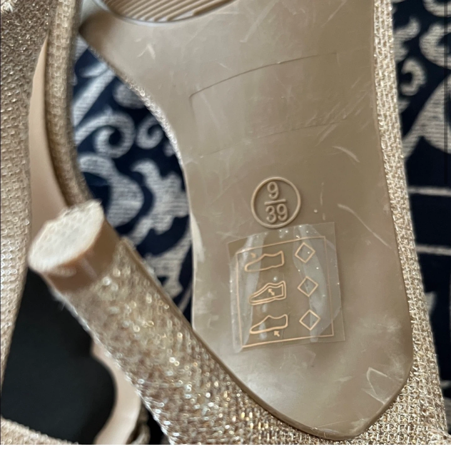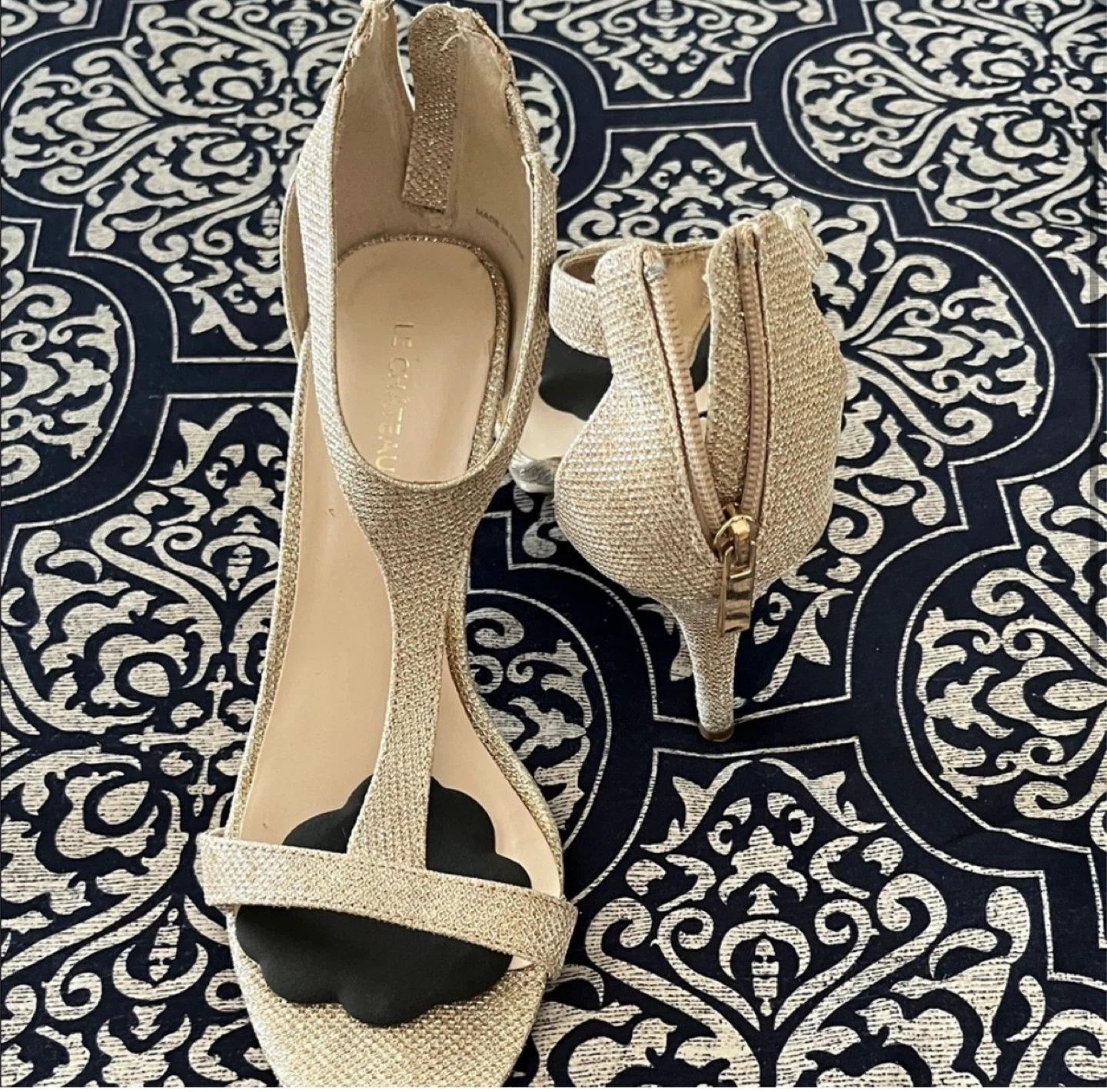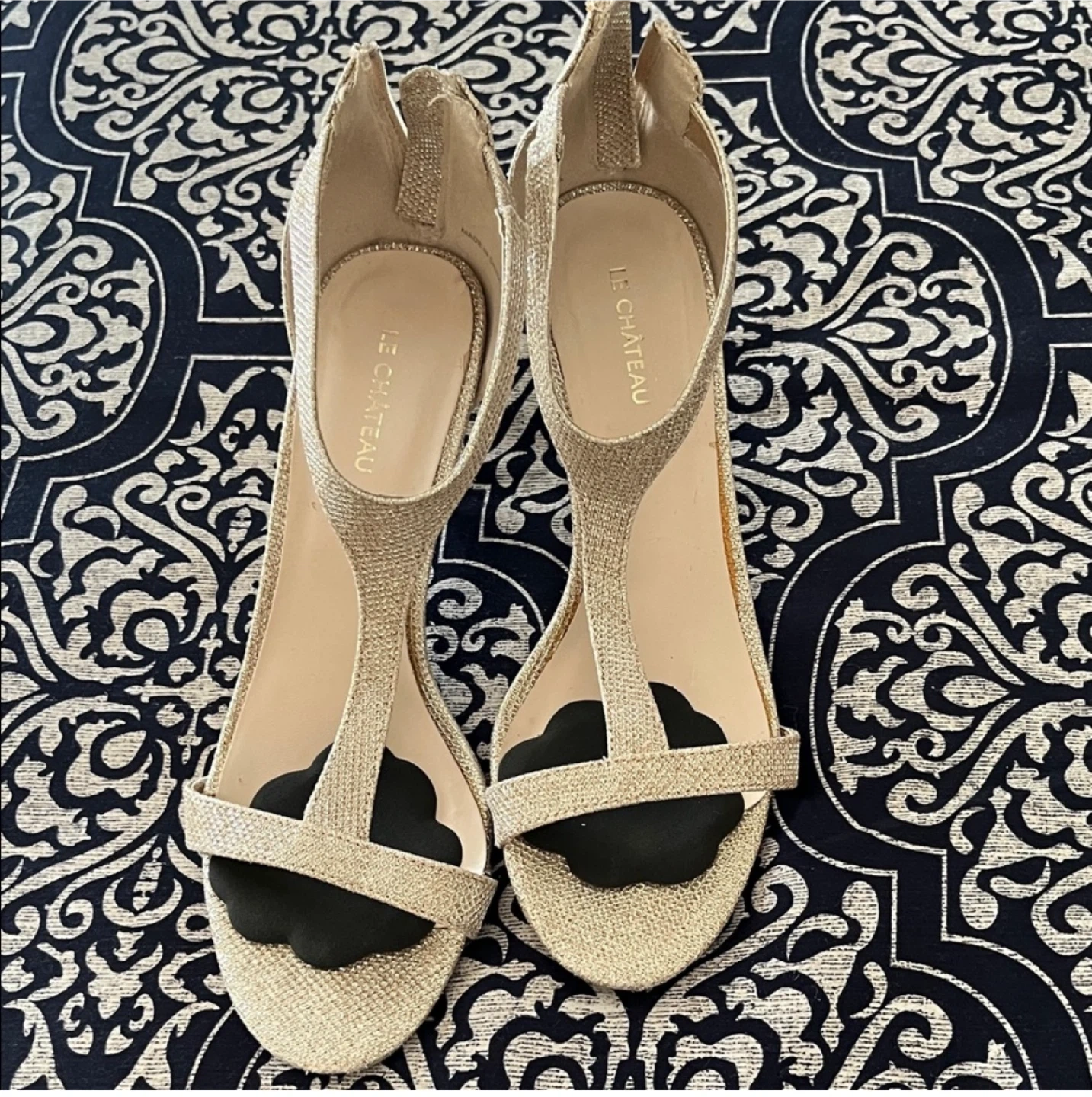 Selling a pair of Le Chateau heels in a beautiful gold colour. They're a size 9. These heels are in great condition and ready for a night out! Used 1 time only.