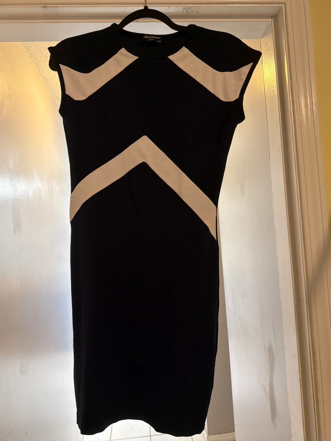 Black and cream chevron dress by Intuition. It's a size medium. This dress is great for a casual outing!
