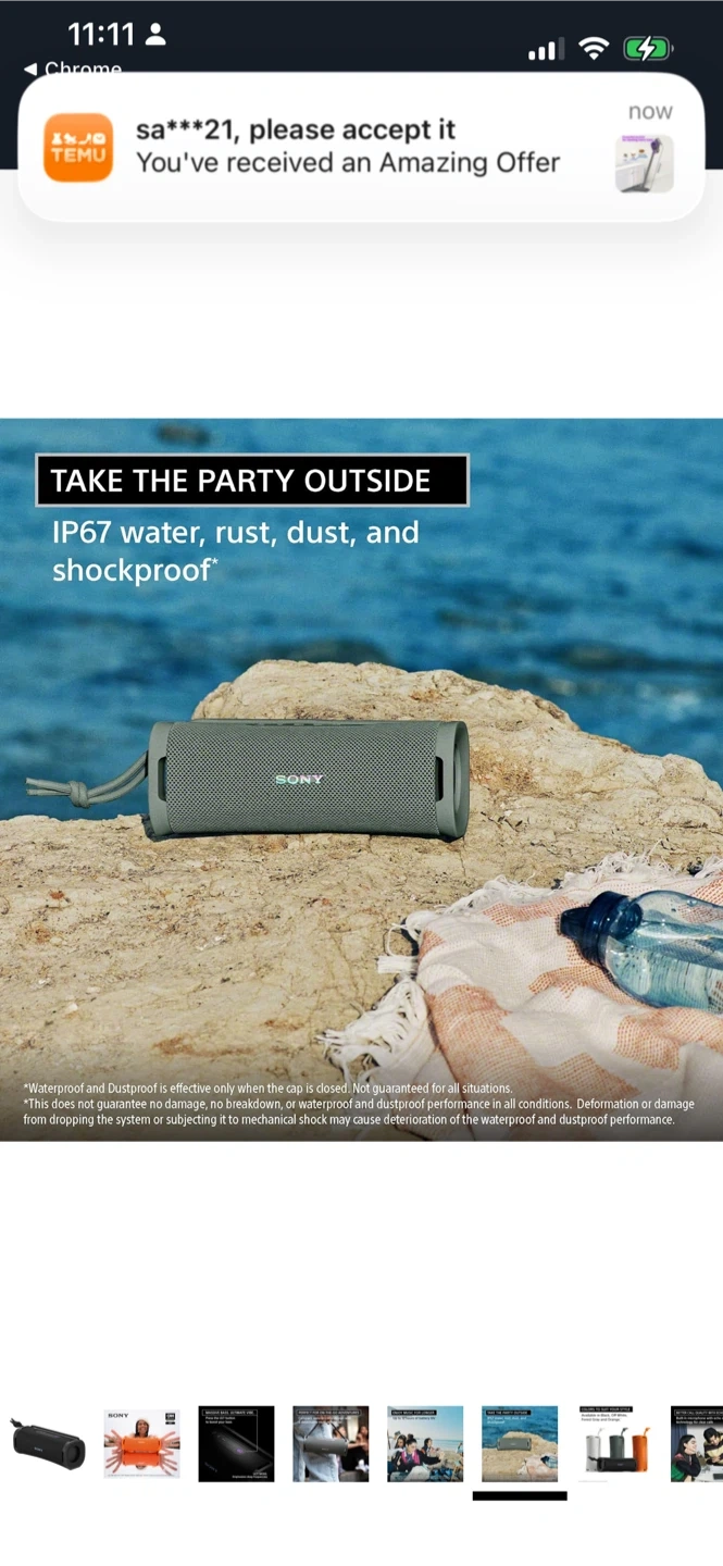 This Sony portable Bluetooth speaker offers massive bass and ultimate vibe with its ULT button. It's IP67 water, rust, and dustproof, perfect for outdoor adventures. Enjoy music for up to 12 hours of battery life. It features a compact, easy-to-carry design with a detachable multi-way strap.